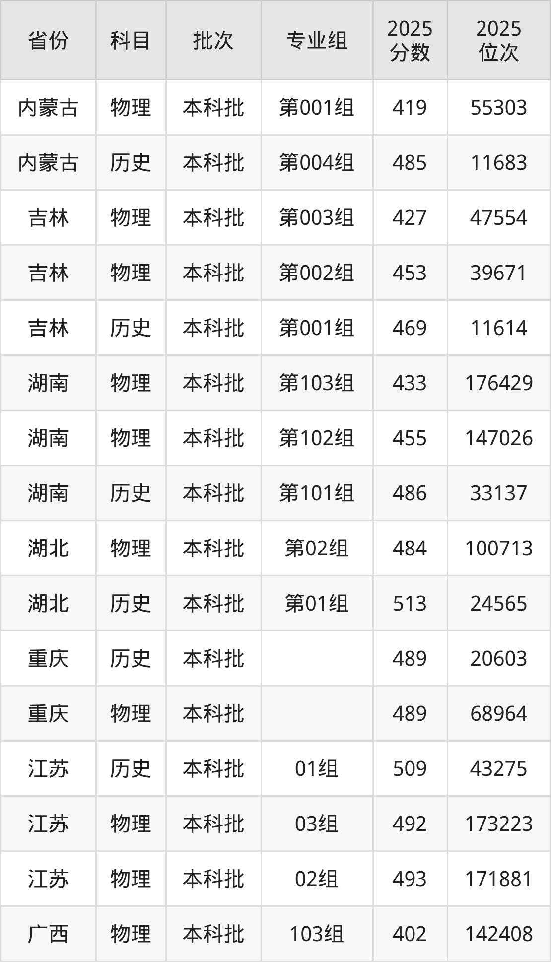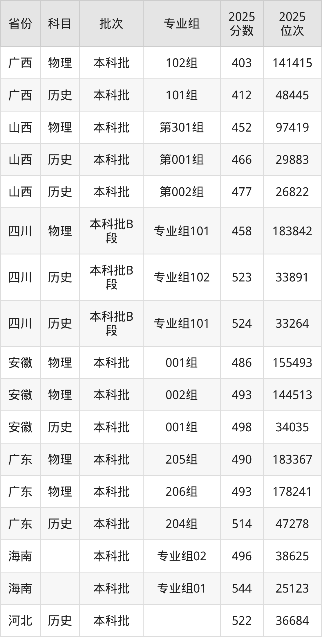 2025年投档录取最低分为489分,录取最低位次为20603名。