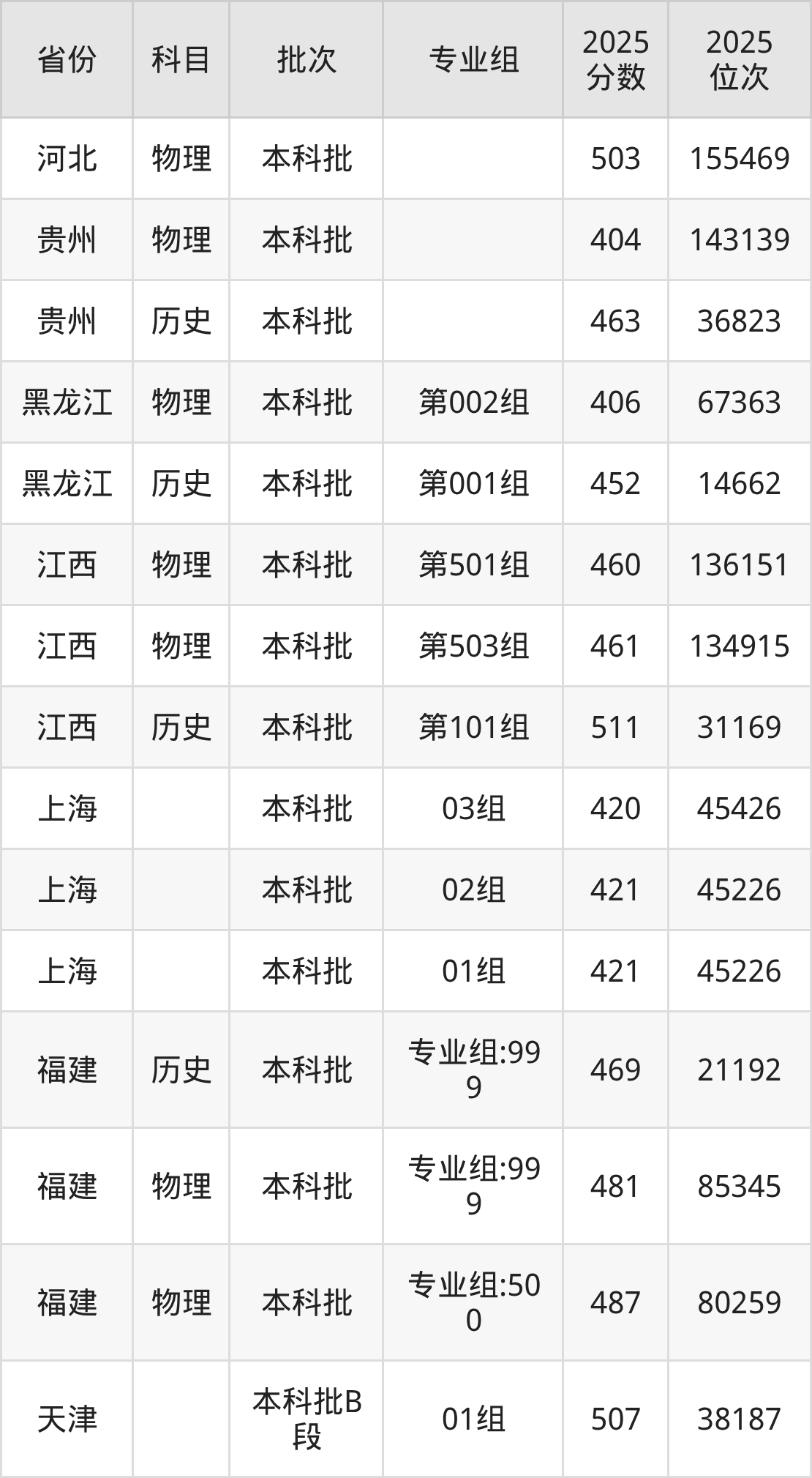 上海财经大学浙江学院第001组:2025年投档录取最低分为419分,录取最低位次为55303名。