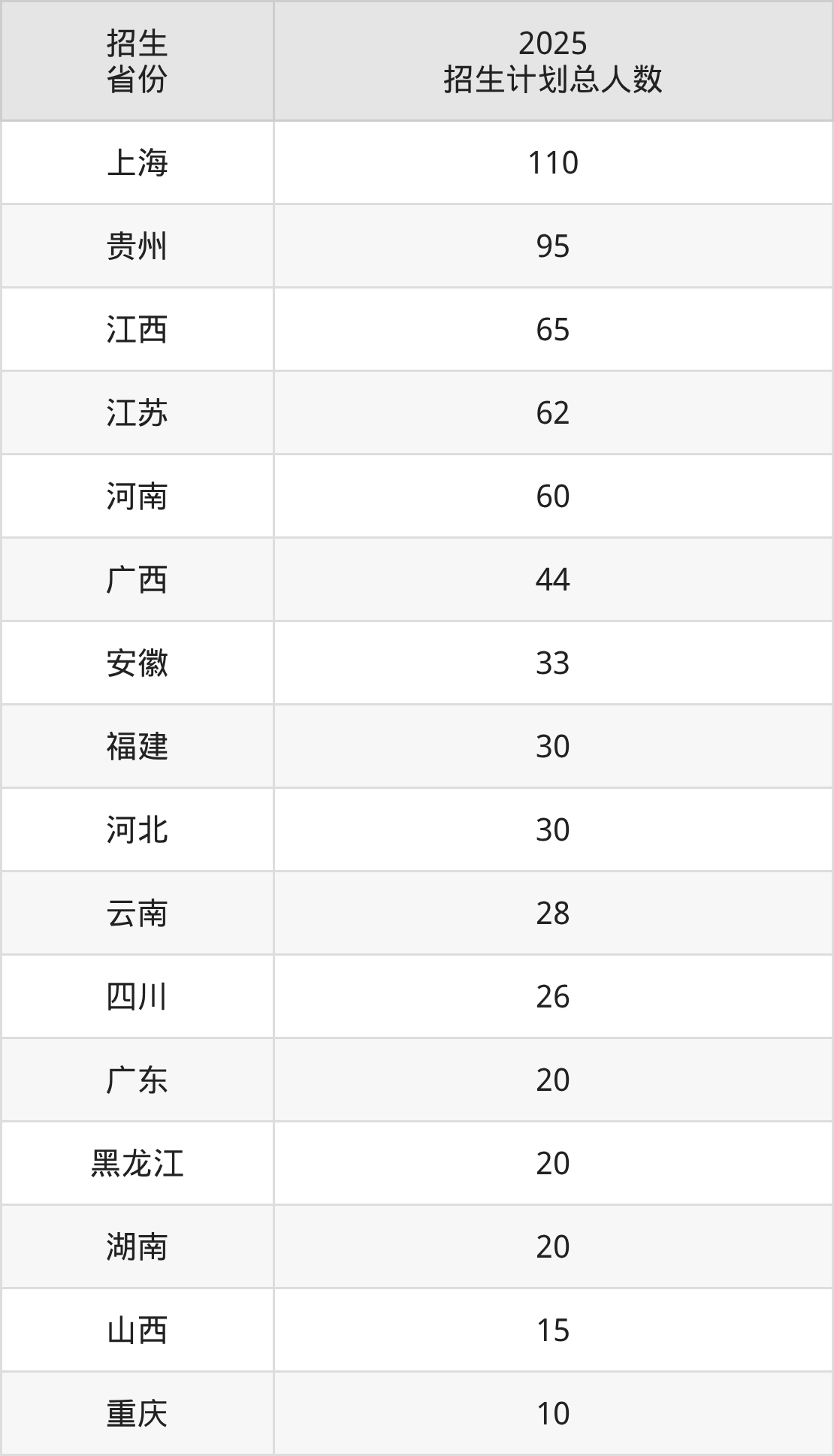 2025年上海财经大学浙江学院面向全国22个省市开展本科招生;招生专业共21个,招生人数共726人。上海财经大学浙江学院在各省具体招生人数情况如下表。