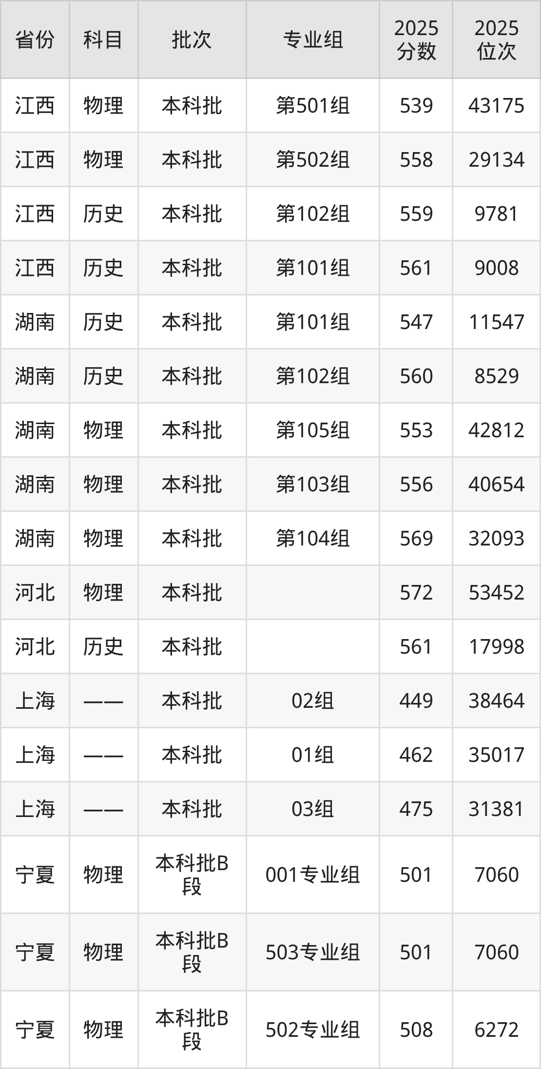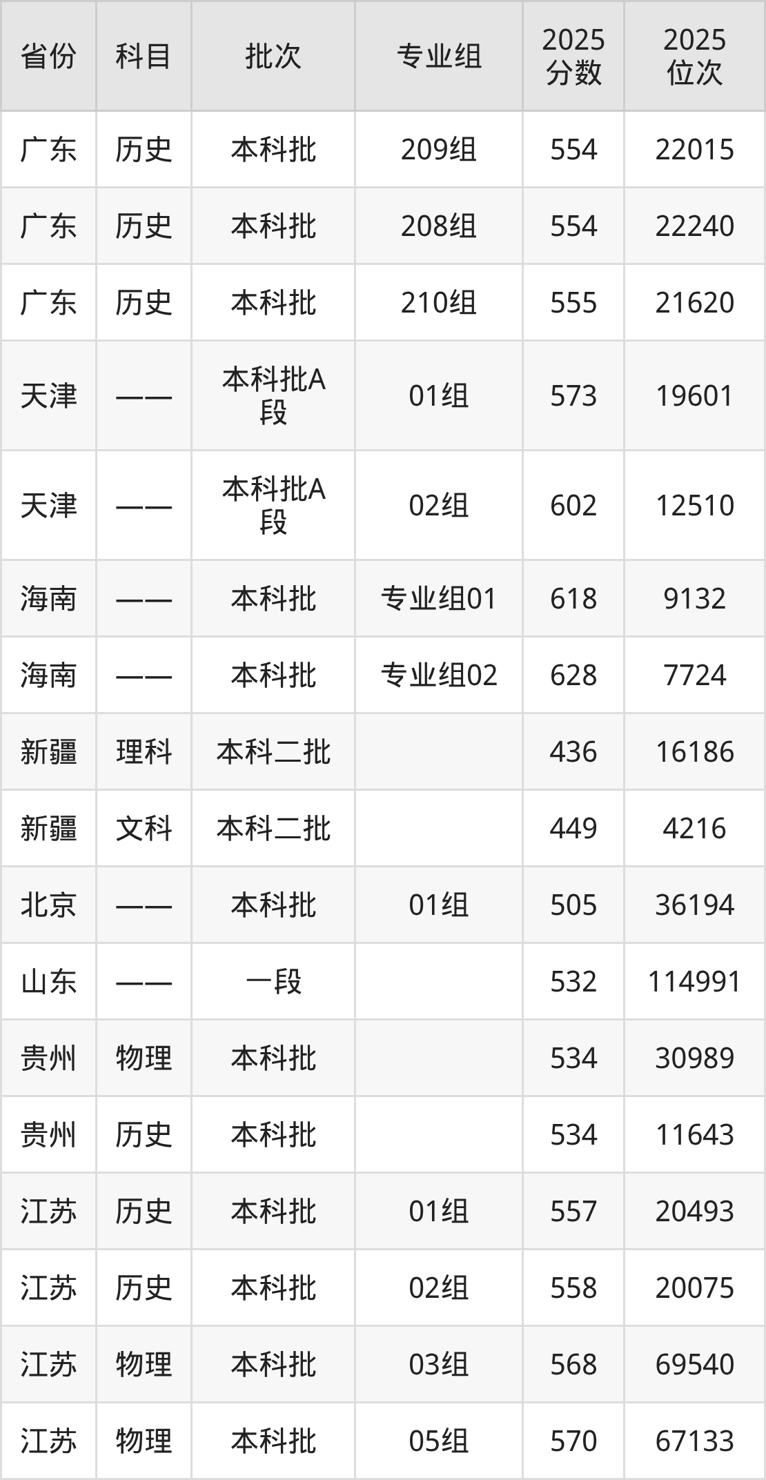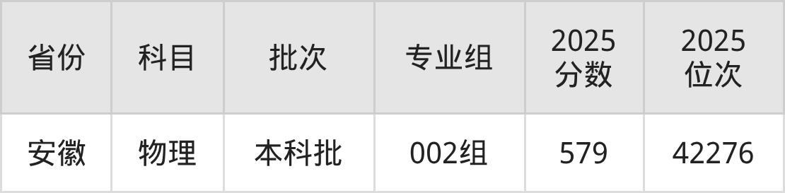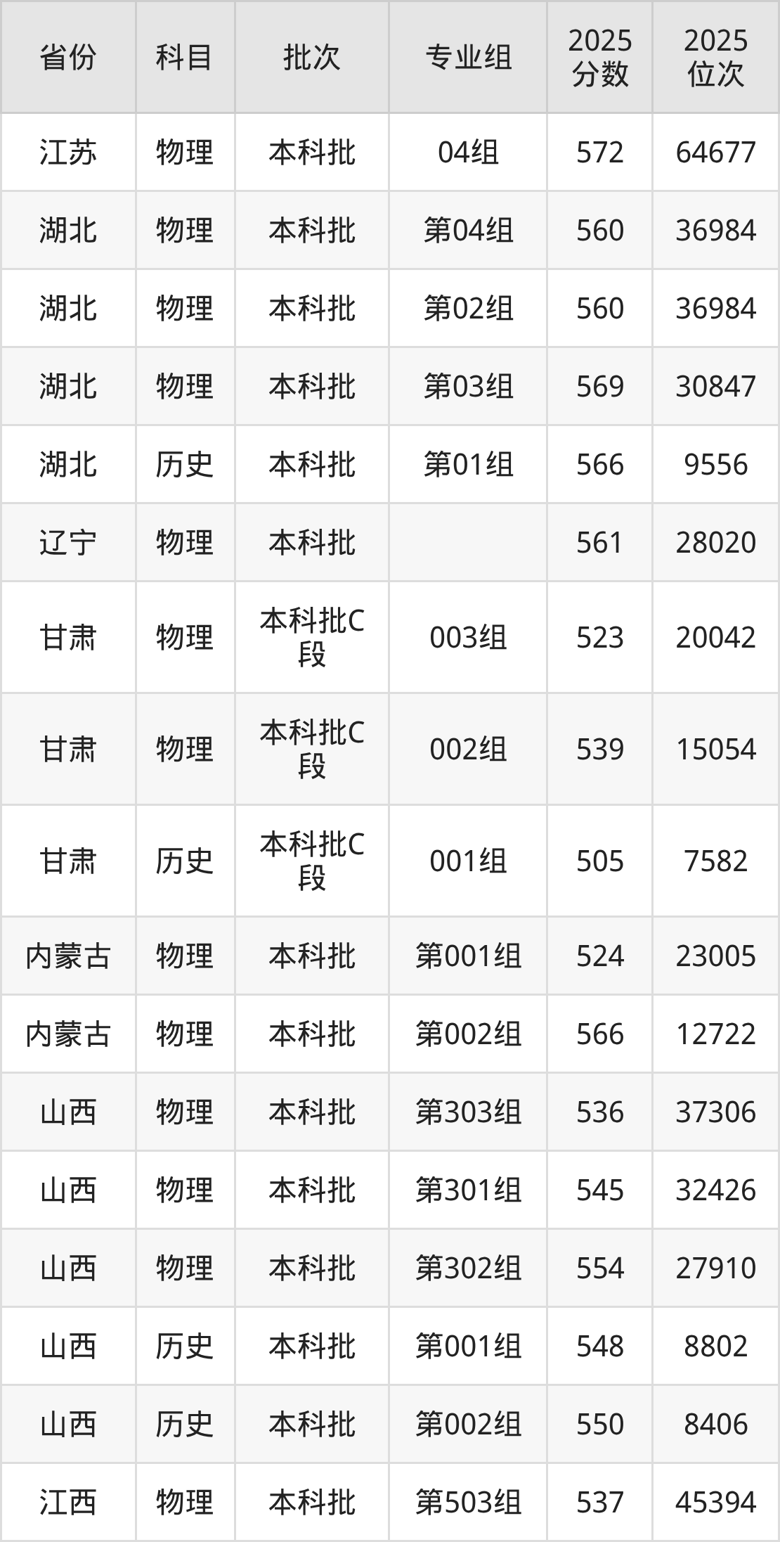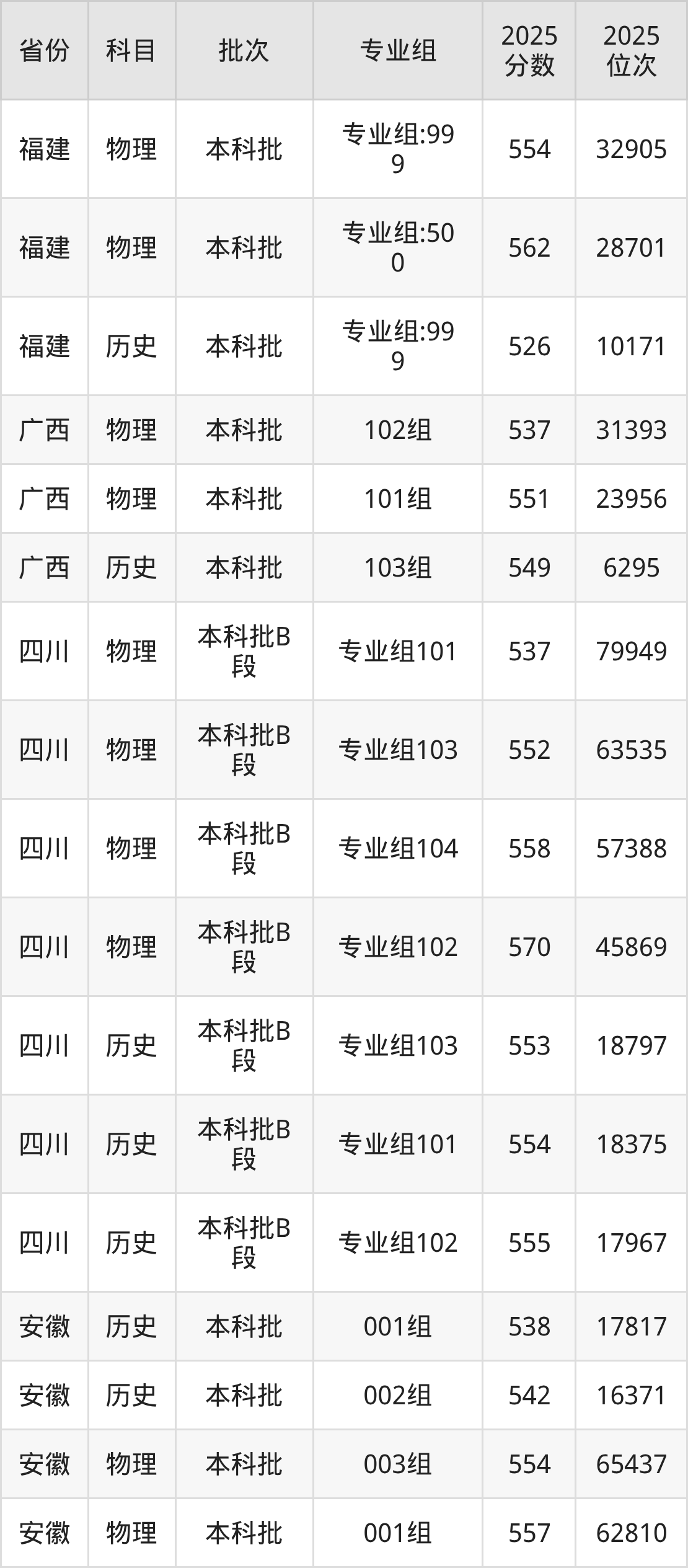 2025年在本科物理类进行招生,各专业组分数线详情如下: