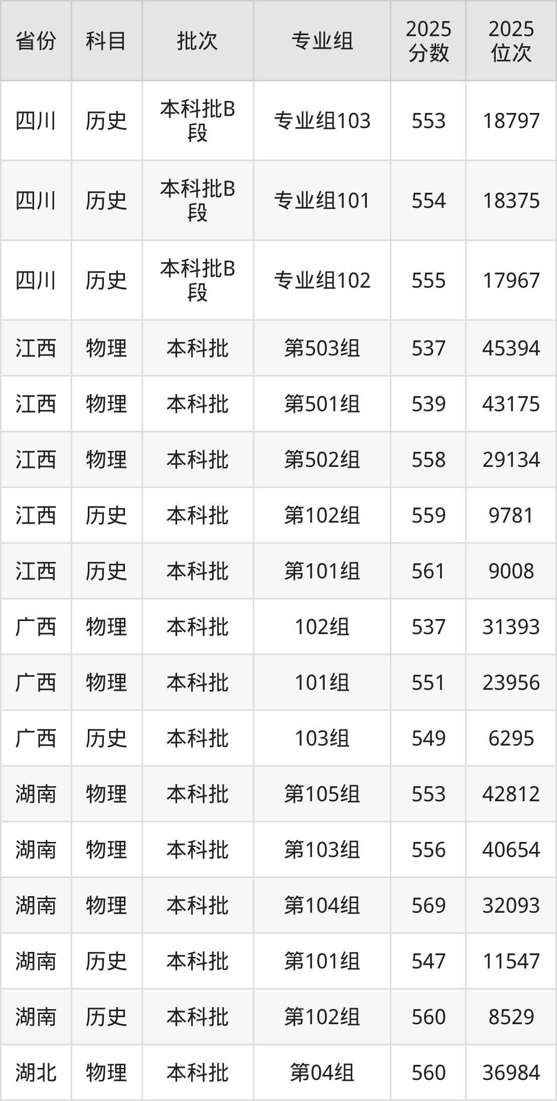 普通类本科物理类最低537分,本科历史类最低553分