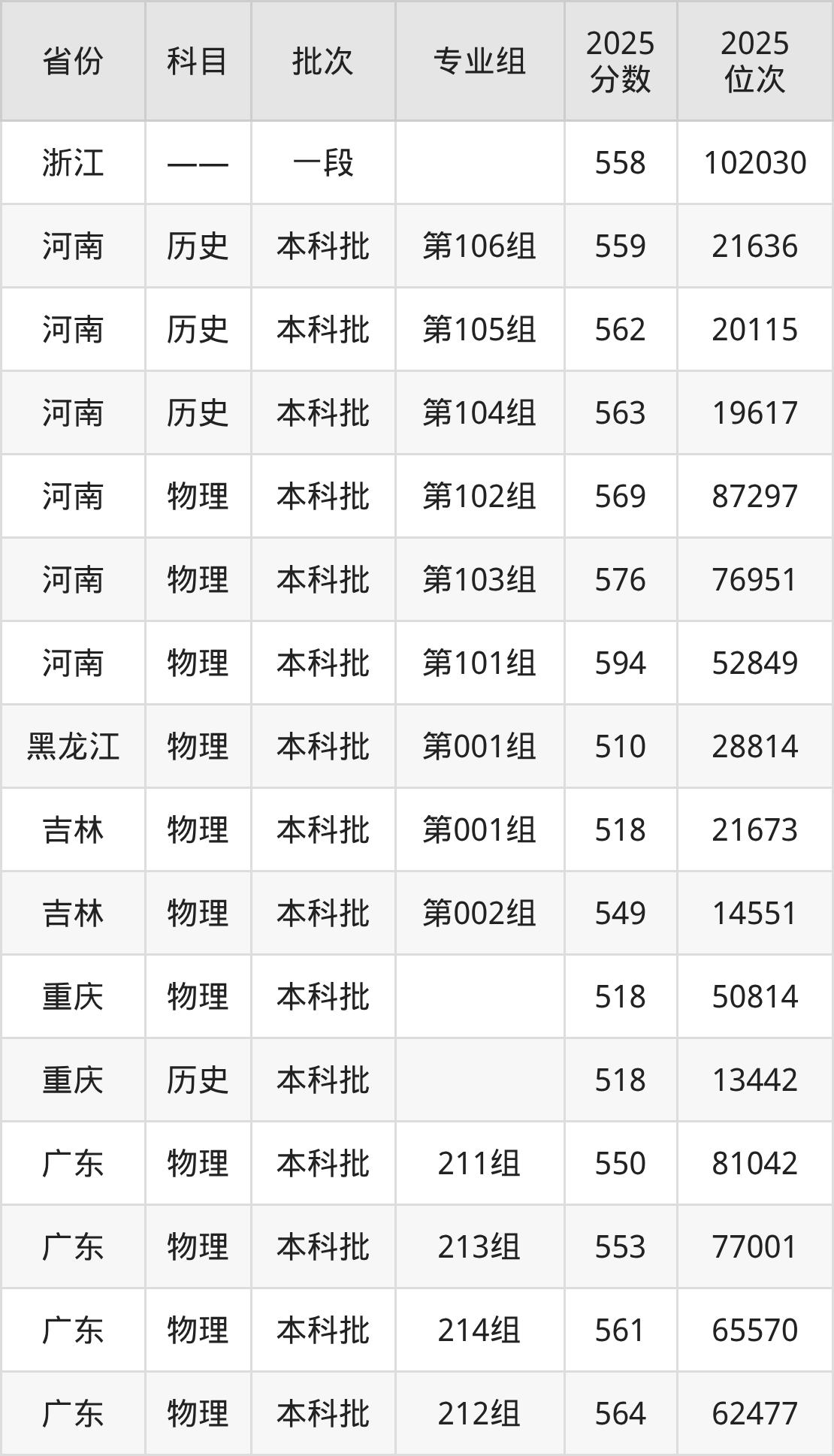 重庆理工大学专业组102:2025年投档录取最低分为555分,录取最低位次为17967名。