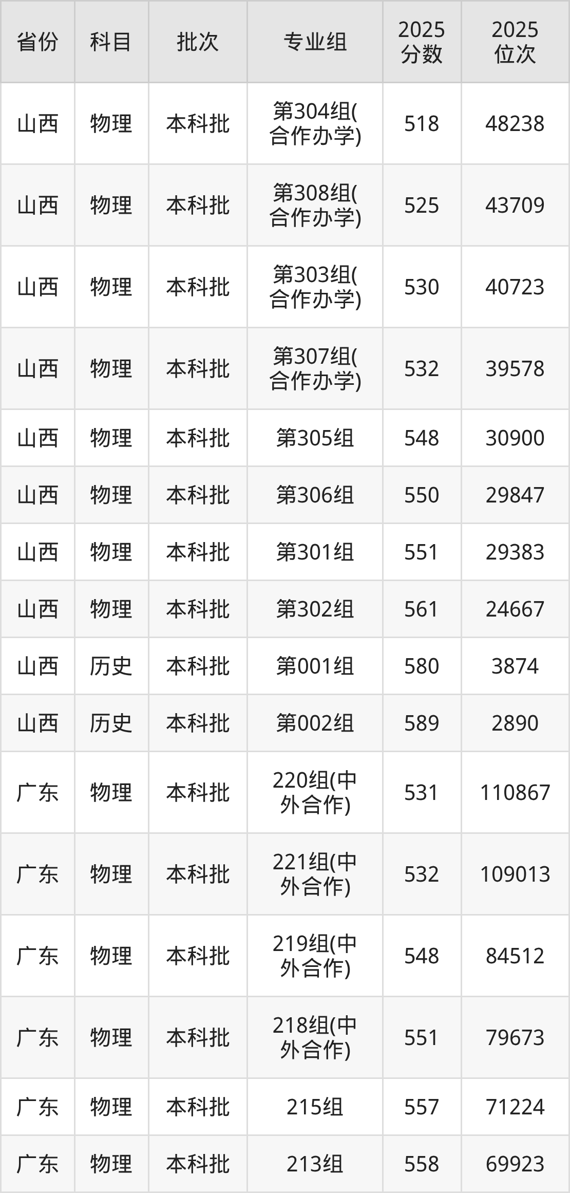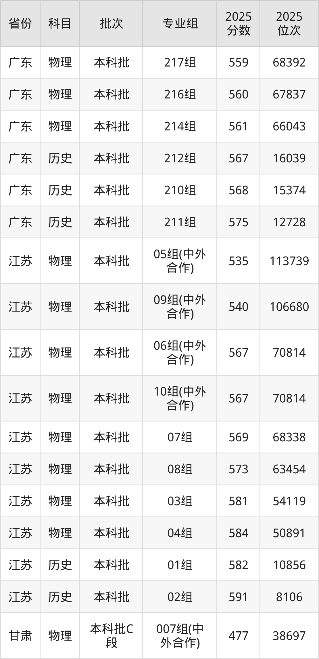 普通类本科物理类最低548分,本科历史类最低559分