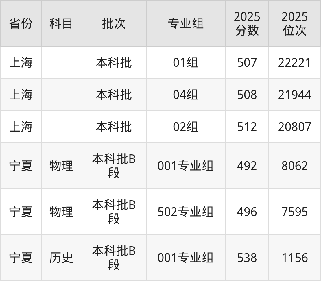 2025年投档录取最低分为543分,录取最低位次为36058名。