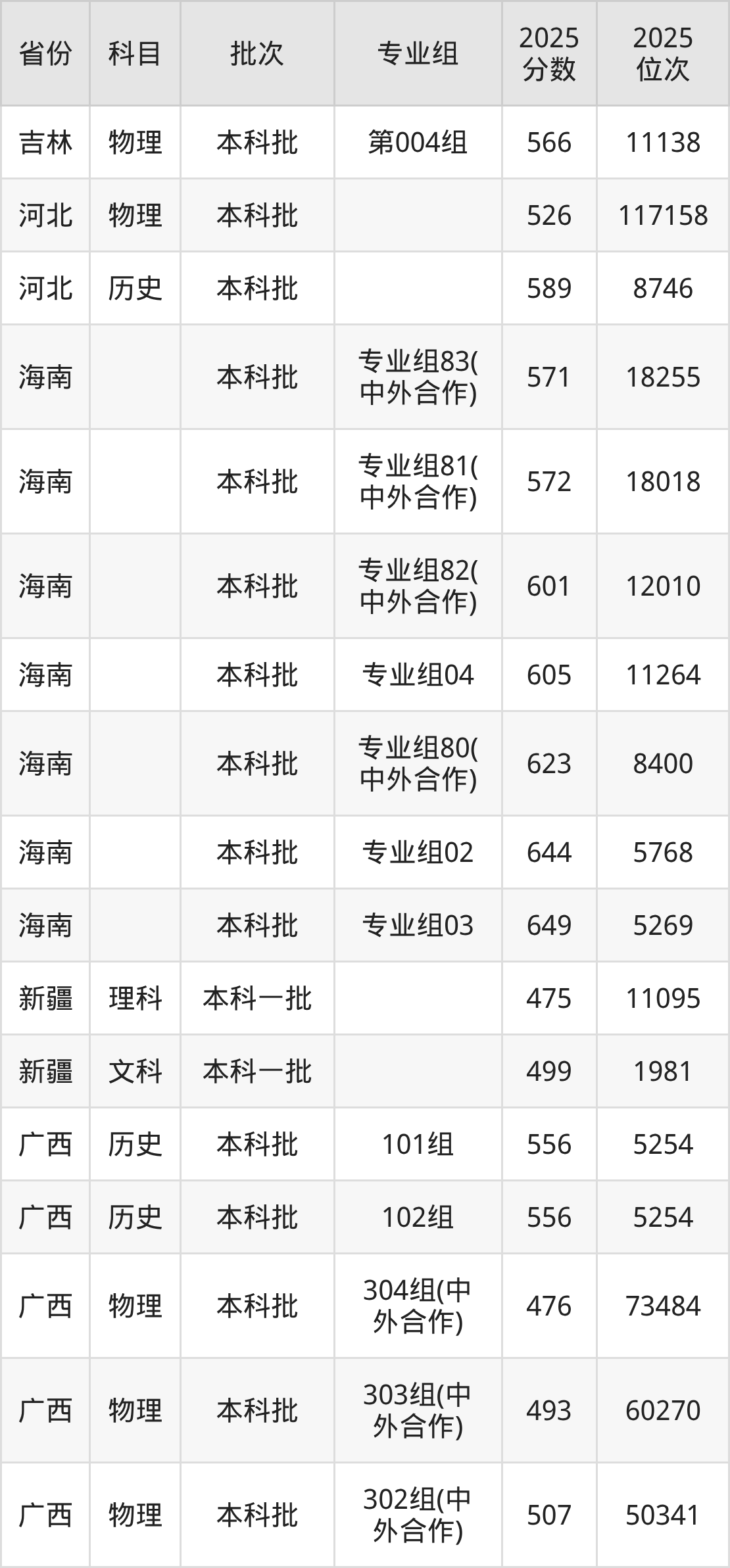 2025年江西财经大学全国录取分数线是432分到649分,录取最低在湖南物理类(第211组(中外合作))、录取最高在海南(专业组03)。各省各专业组最低分具有差异,详情如下:
