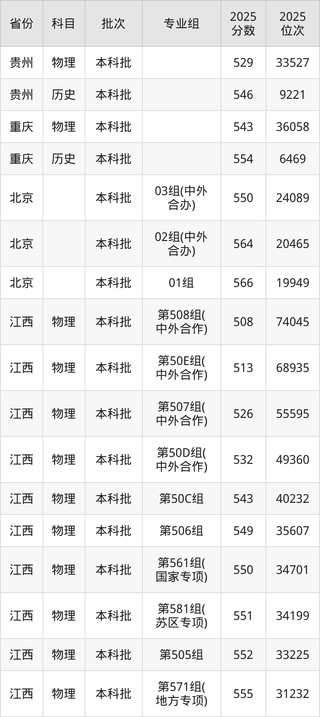 江西财经大学第561组(国家专项):2025年投档录取最低分为550分,录取最低位次为34701名。