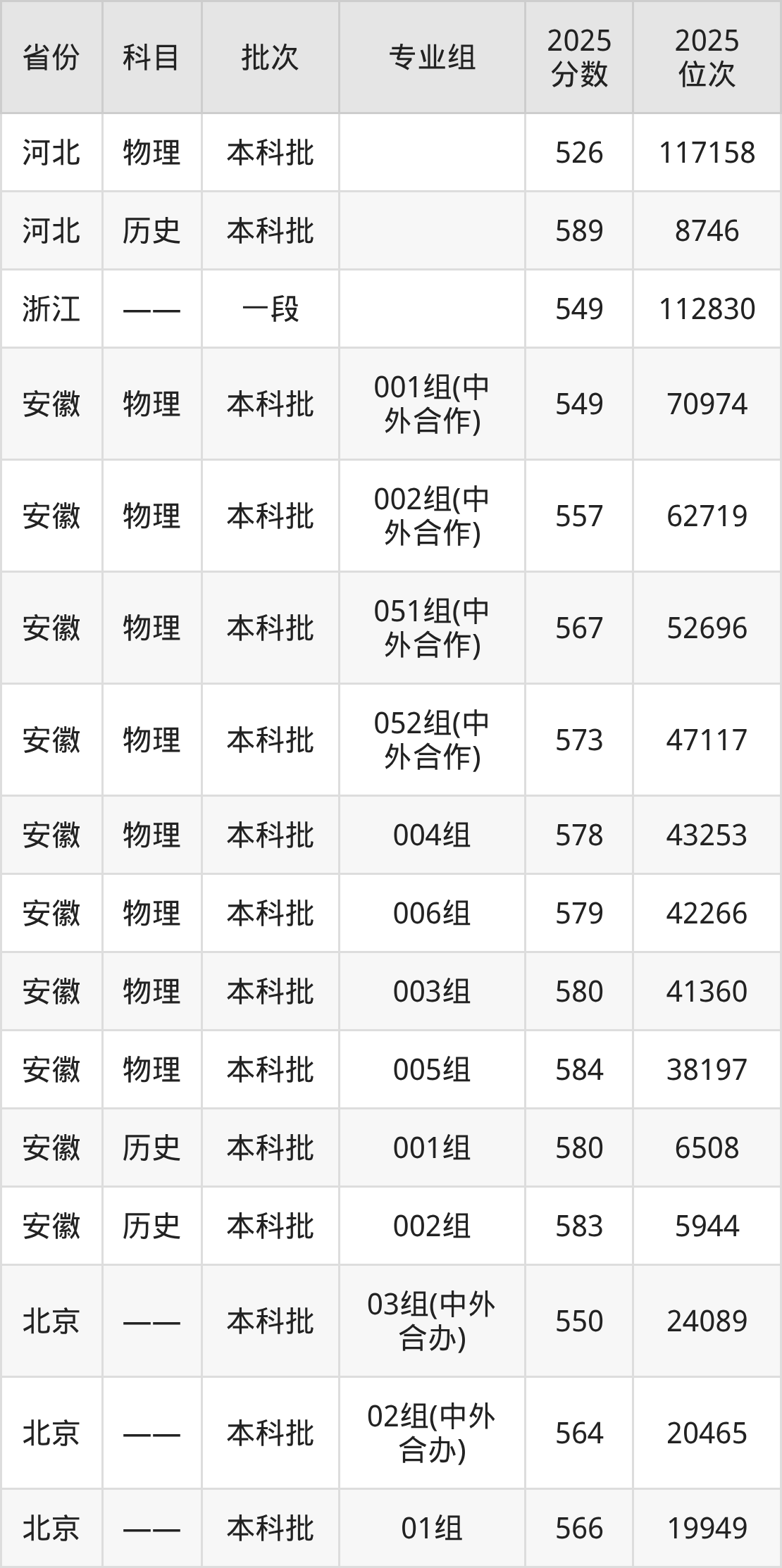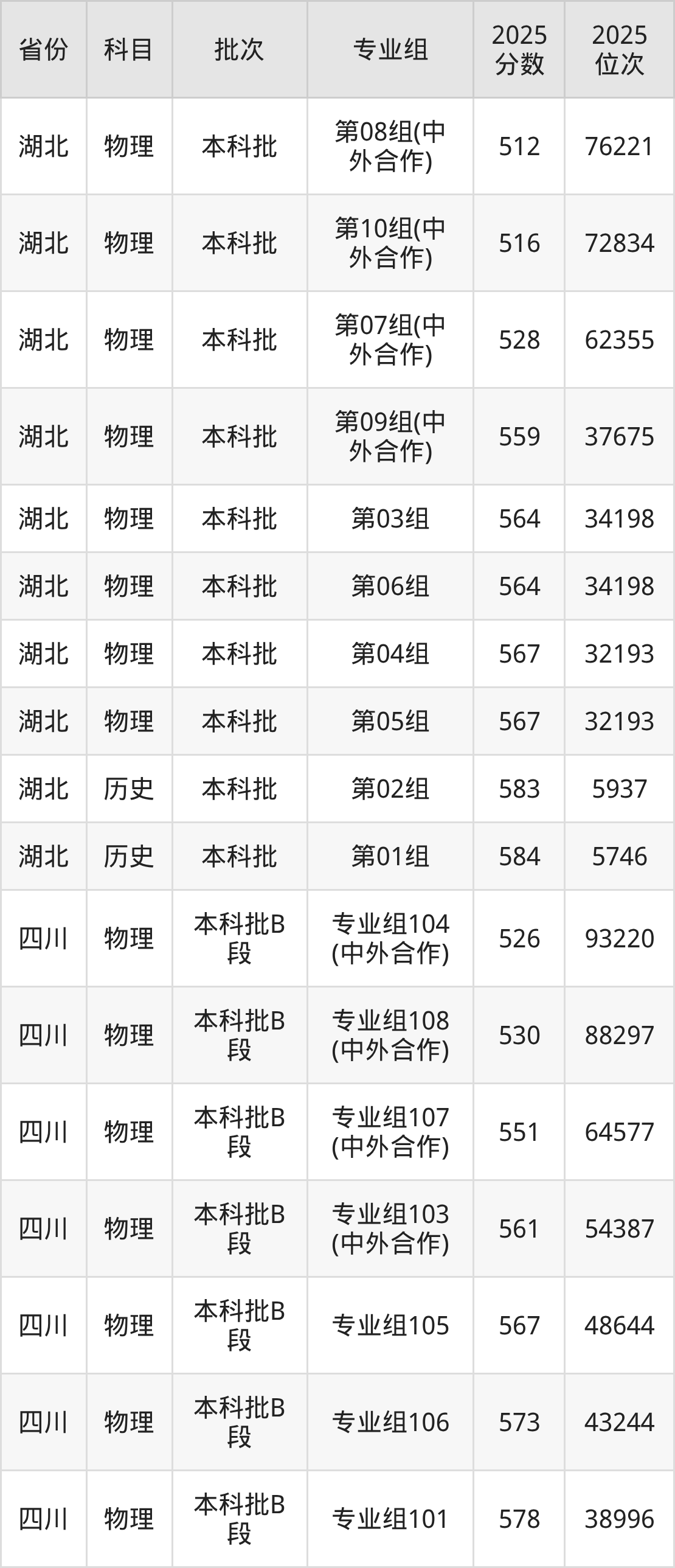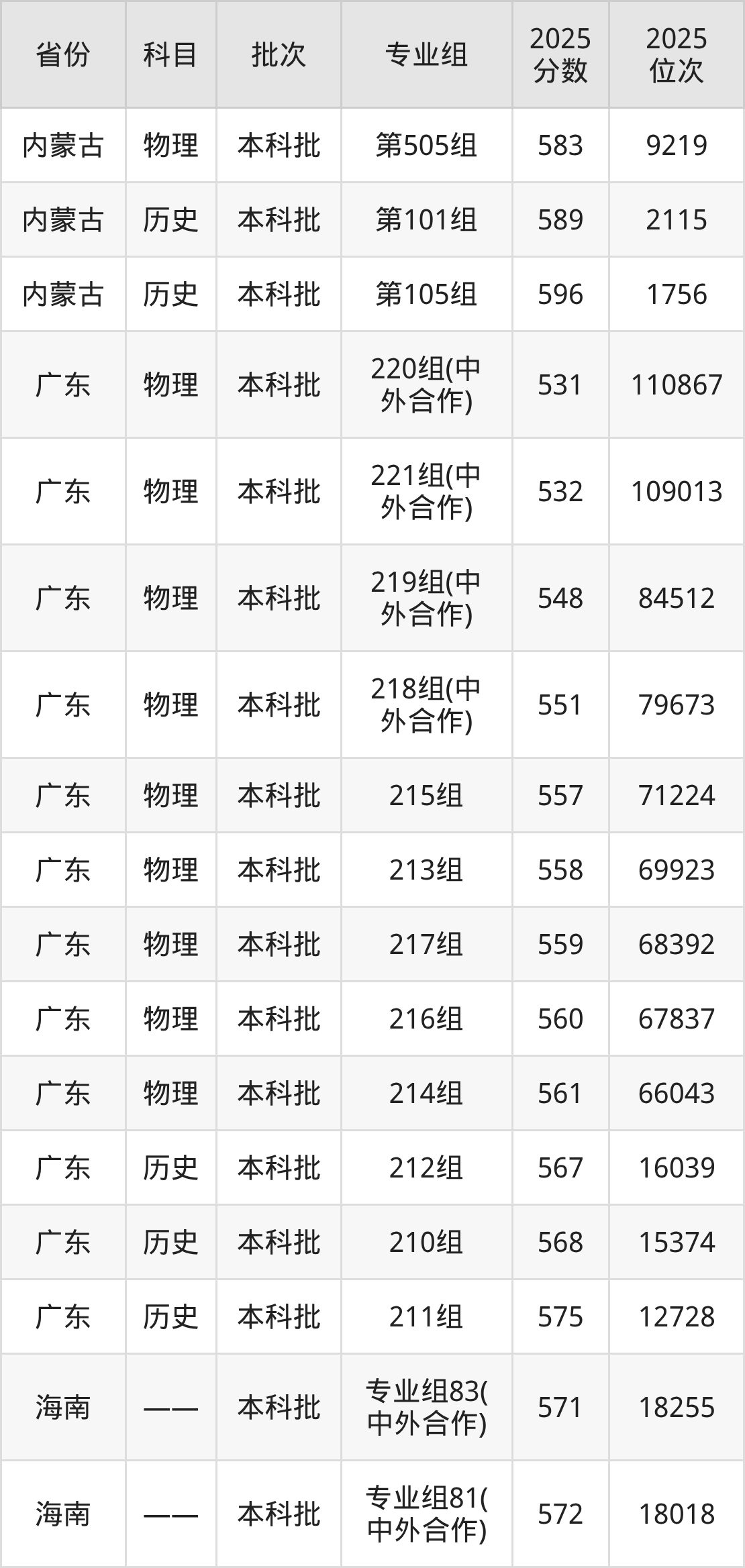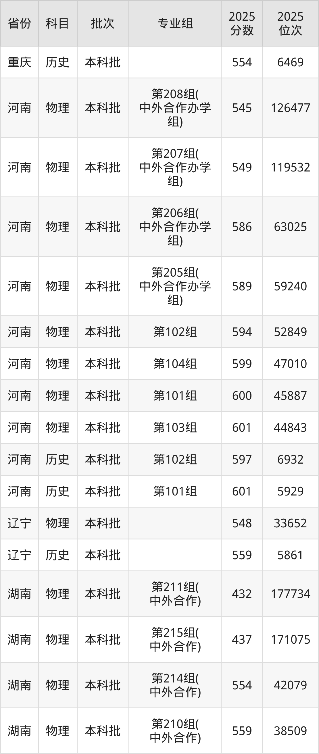 普通类本科历史类最低579分,本科物理类最低574分