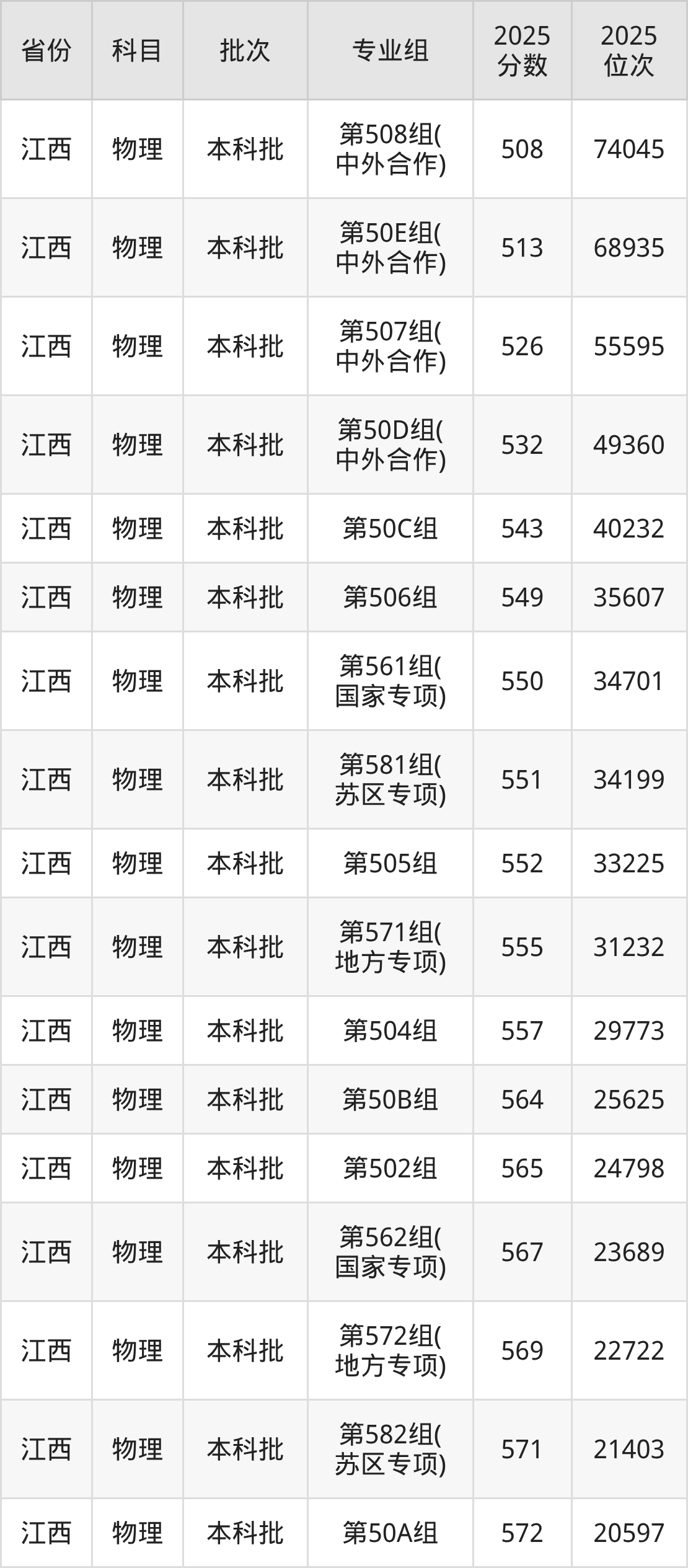 江西财经大学第571组(地方专项):2025年投档录取最低分为555分,录取最低位次为31232名。