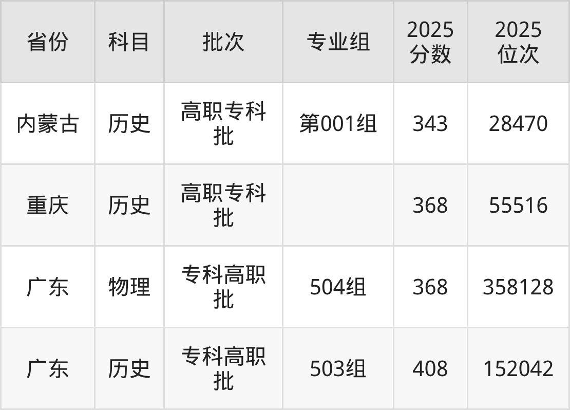 湖南商务职业技术学院专业组101:2025年投档录取最低分为374分,录取最低位次为255941名。