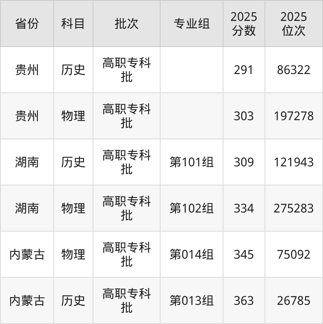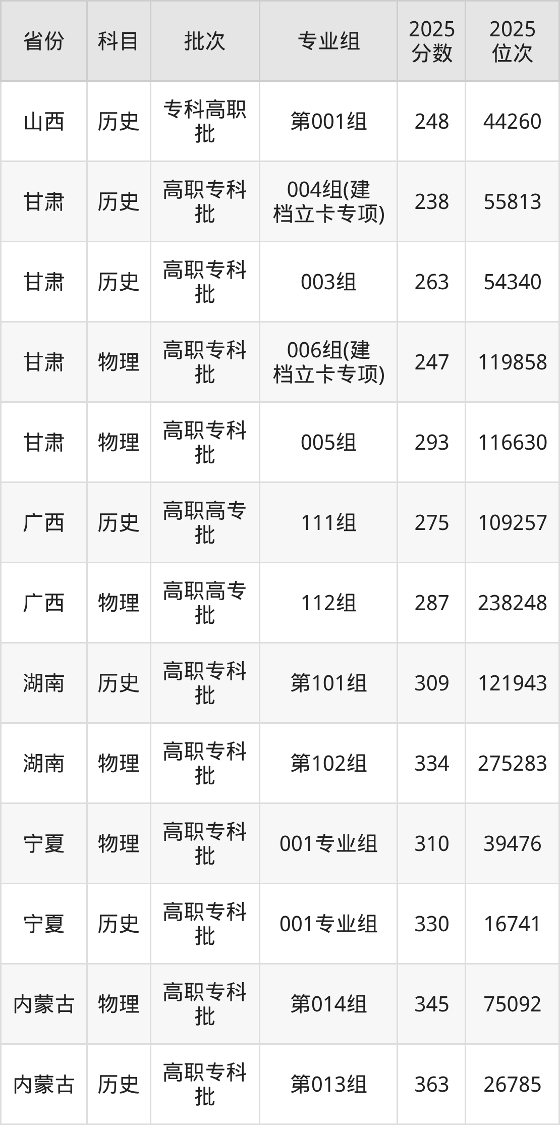 下面是2025年甘肃有色冶金职业技术学院全国录取分数线一览表,请查阅。