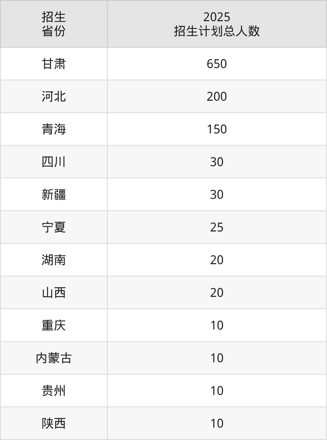2025年甘肃有色冶金职业技术学院面向全国12个省市开展专科招生;招生专业共29个,招生人数共1165人。
