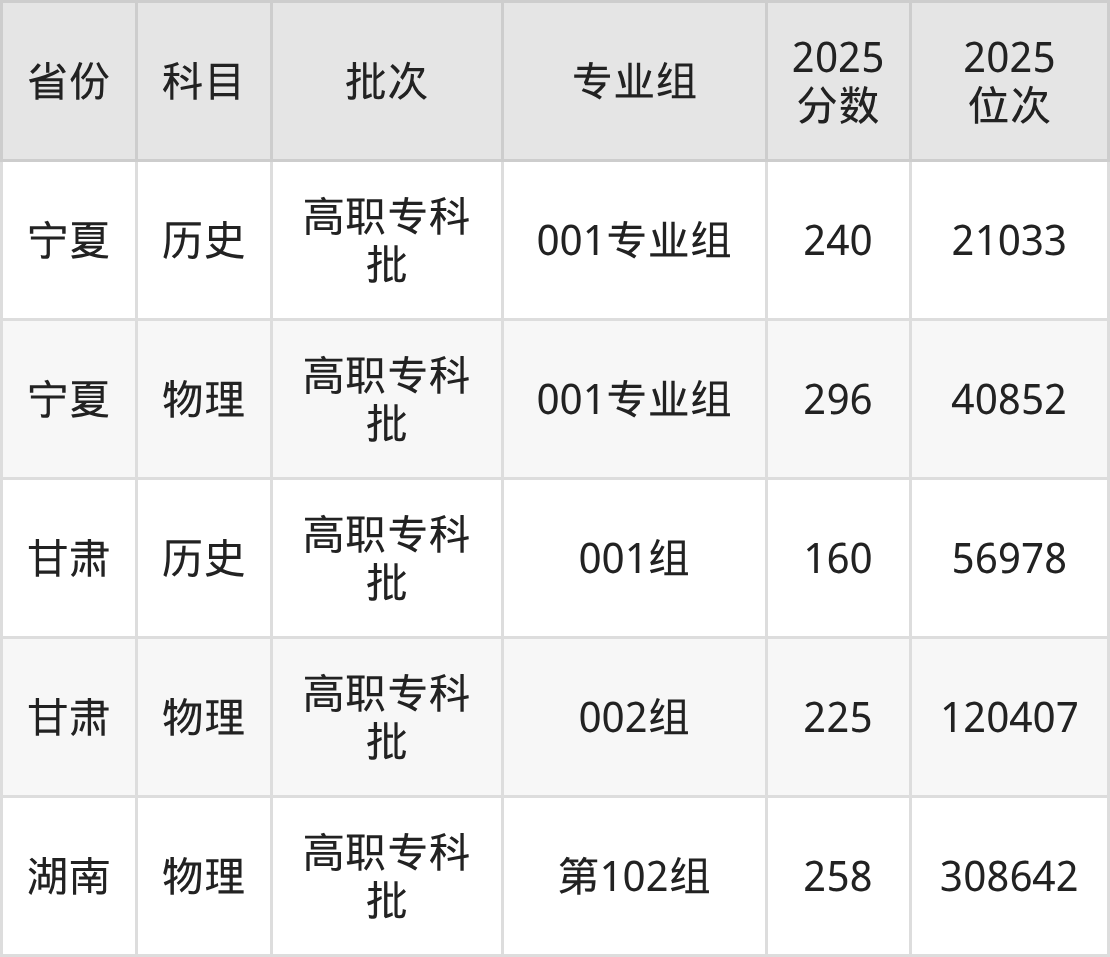 2025年在专科物理类进行招生,各专业组分数线详情如下: