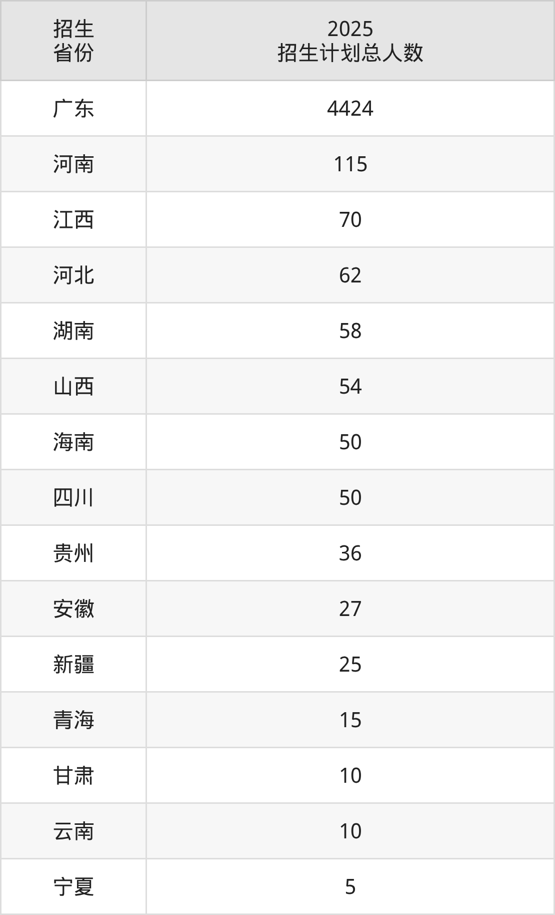 2025年广东创新科技职业学院面向全国15个省市开展专科招生;招生专业共72个,招生人数共5011人。2025年在广东省招生计划总人数是4424人,其中,广东创新科技职业学院在广东省招生人数最多的是计算机应用技术。广东创新科技职业学院在各省具体招生人数情况如下表。