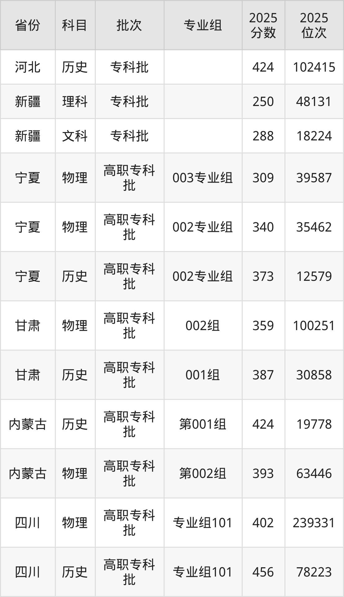 下面是2025年宁夏警官职业学院全国录取分数线一览表,请查阅。