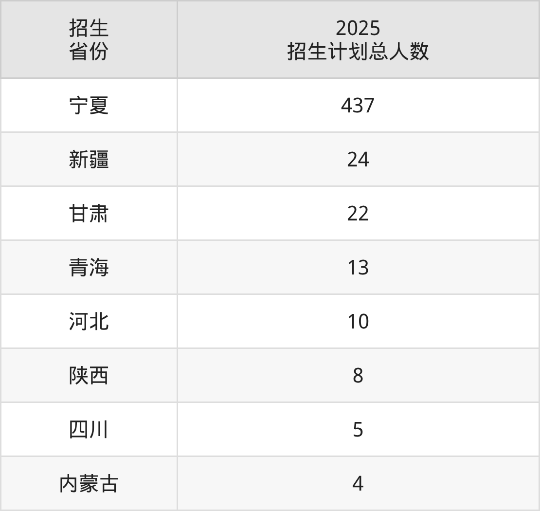 2025年宁夏警官职业学院面向全国8个省市开展专科招生;招生专业共12个,招生人数共523人。2025年在宁夏回族自治区招生计划总人数是437人,其中,宁夏警官职业学院在宁夏回族自治区招生人数最多的是安全防范技术。宁夏警官职业学院在各省具体招生人数情况如下表。