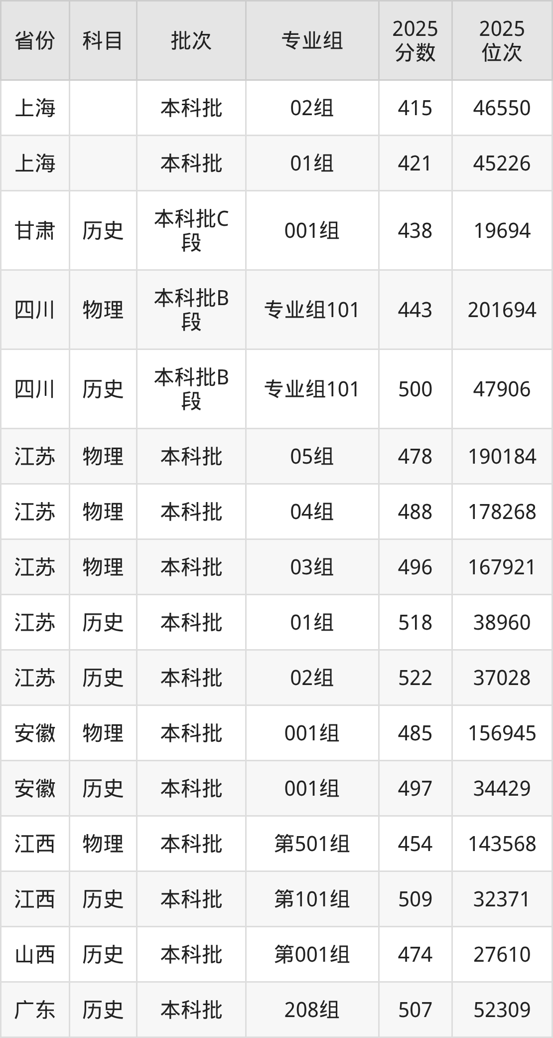 南京师范大学泰州学院001组:2025年投档录取最低分为485分,录取最低位次为156945名。