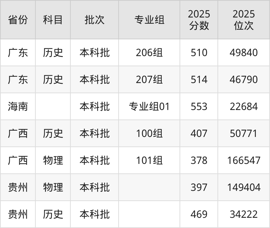 2025年投档录取最低分为469分,录取最低位次为34222名。