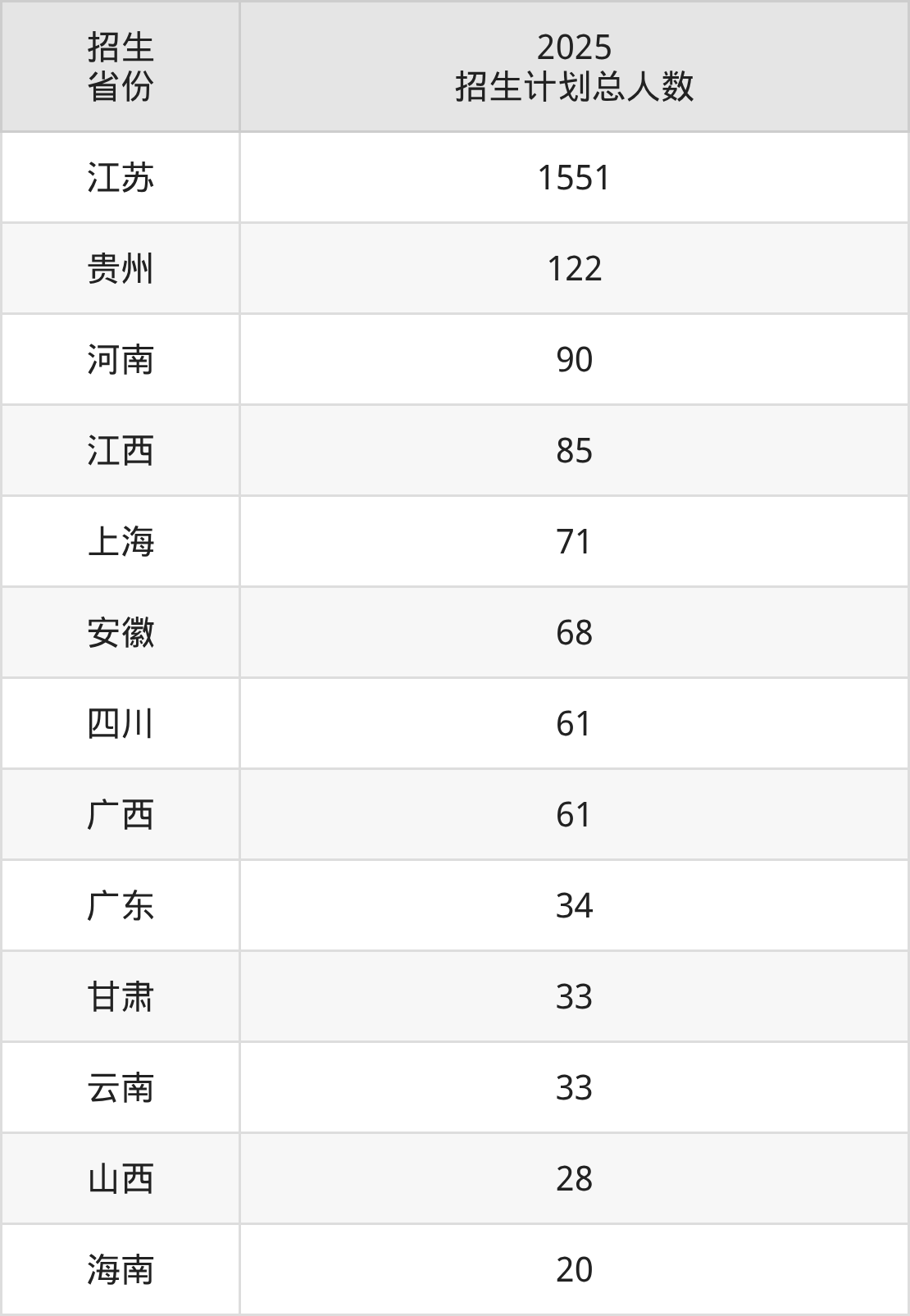 2025年南京师范大学泰州学院面向全国13个省市开展本科招生;招生专业共21个,招生人数共2257人。2025年在江苏省招生计划总人数是1551人,其中,南京师范大学泰州学院在江苏省招生人数最多的是电气工程及其自动化。南京师范大学泰州学院在各省具体招生人数情况如下表。