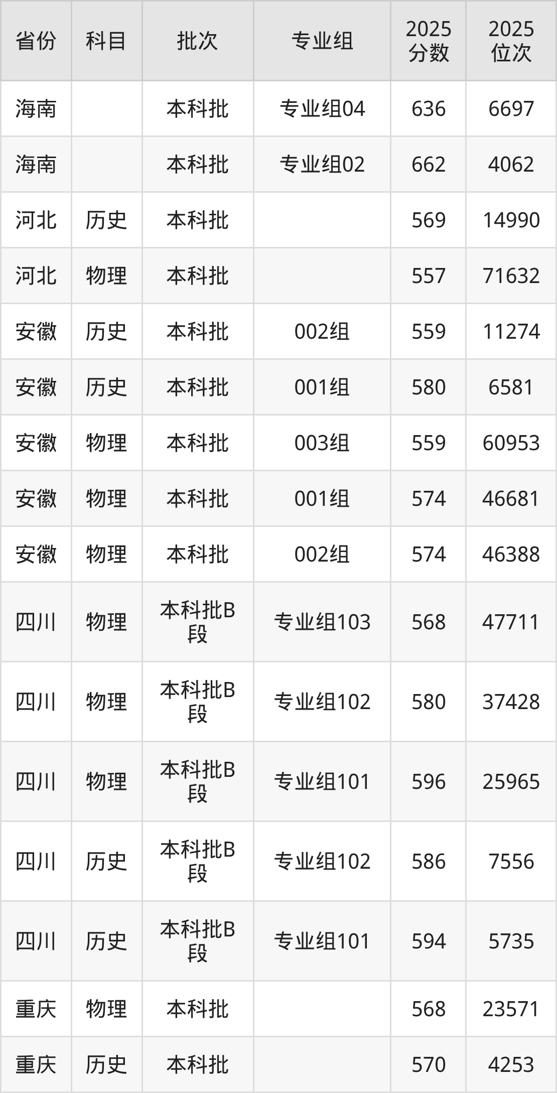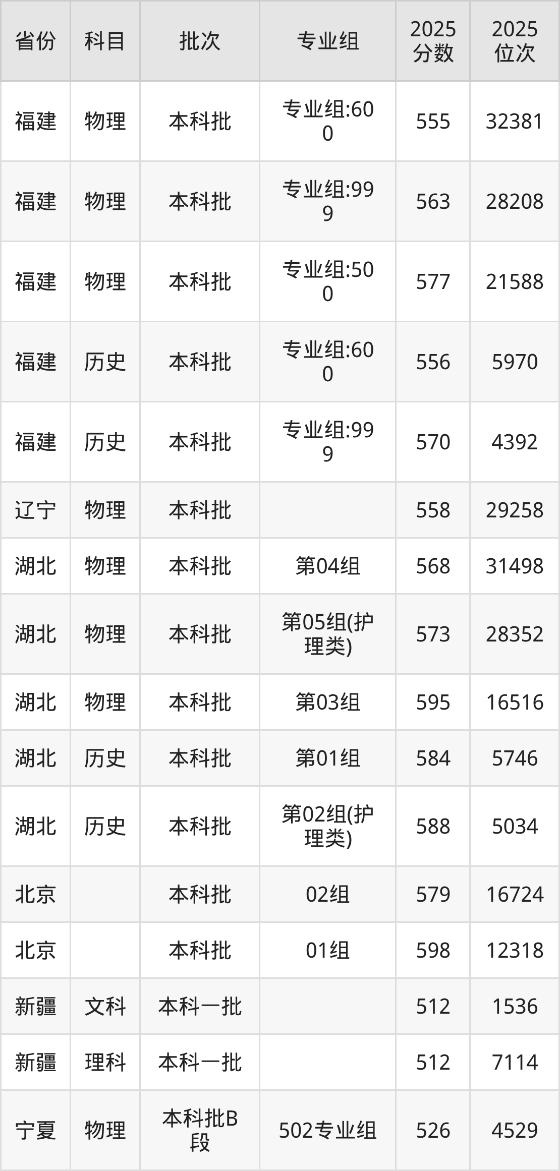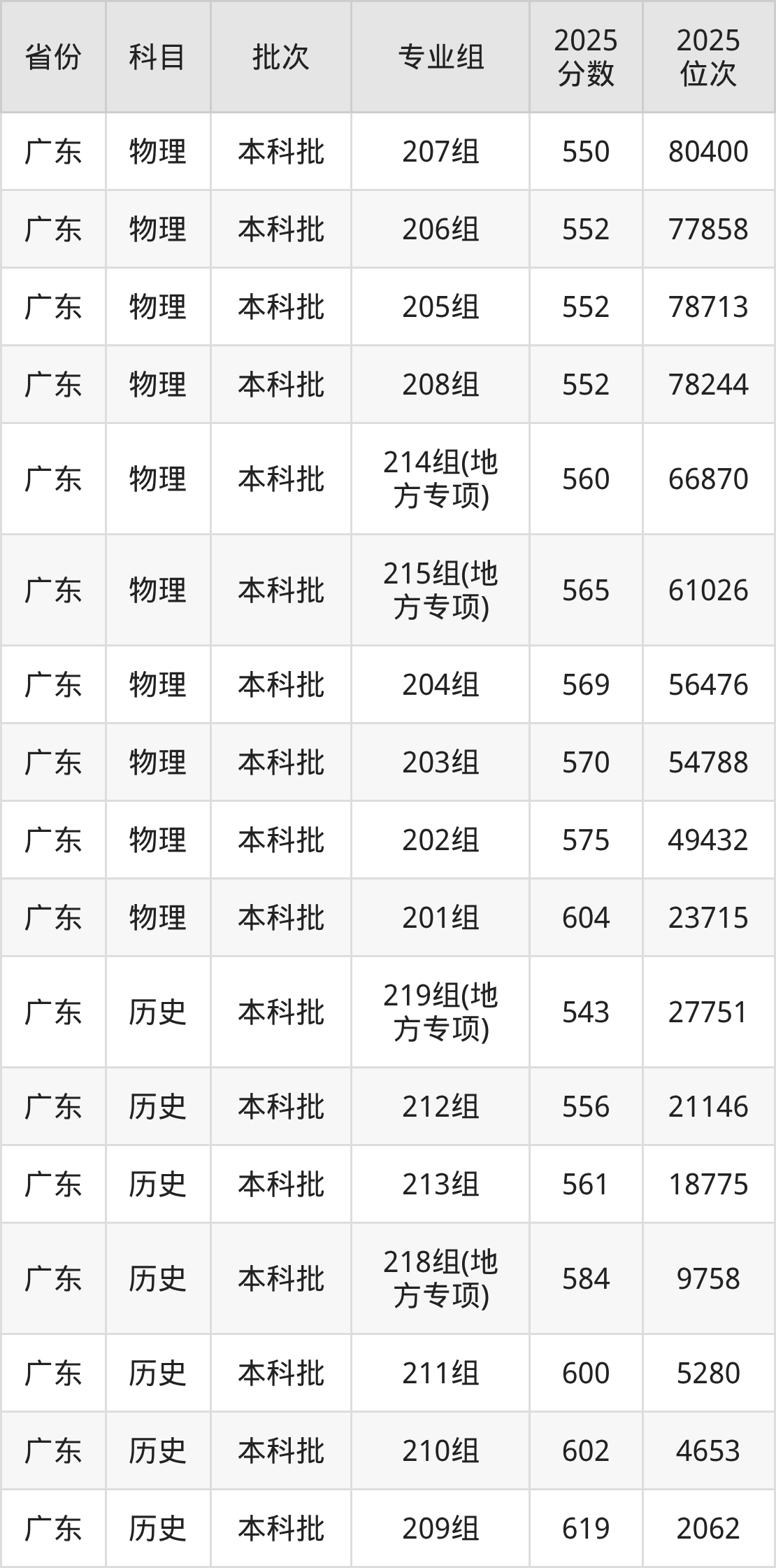 2025年在本科物理类进行招生,各专业组分数线详情如下: