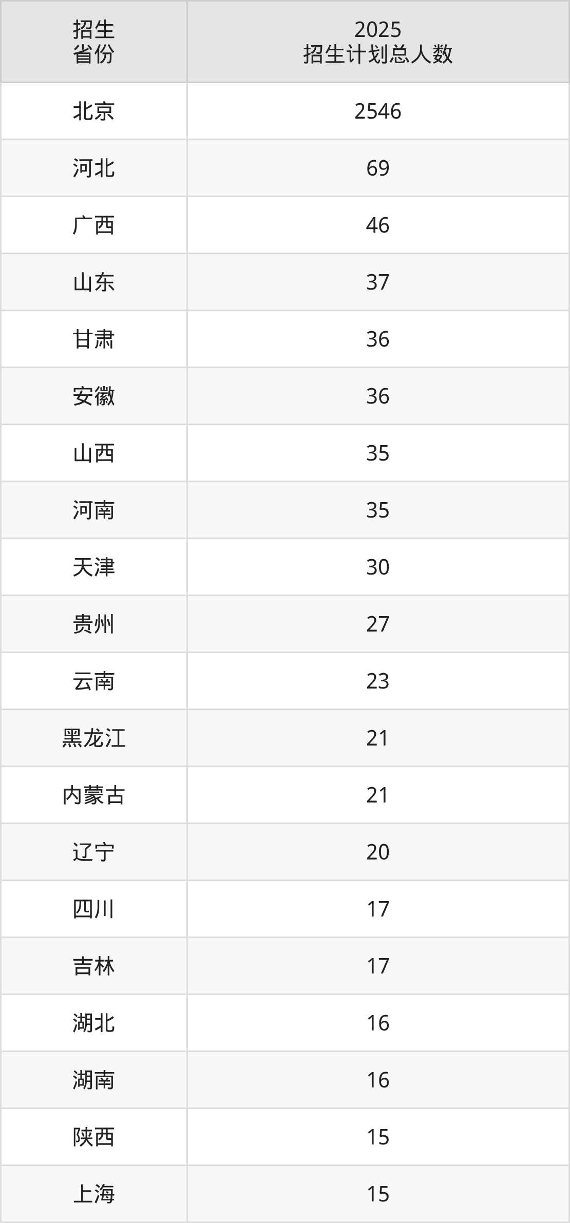 2025年北京工业大学面向全国29个省市开展本科招生;招生专业共44个,招生人数共3159人。2025年在北京市招生计划总人数是2546人,其中,北京工业大学在北京市招生人数最多的是材料类。北京工业大学在各省具体招生人数情况如下表。