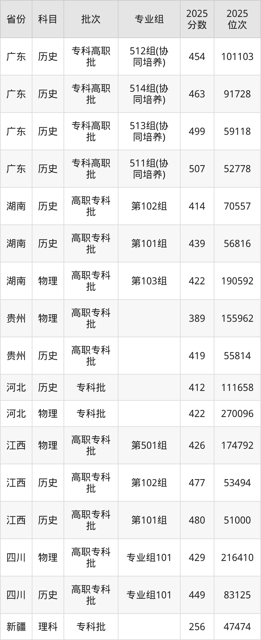 下面是2025年珠海城市职业技术学院全国录取分数线一览表,请查阅。