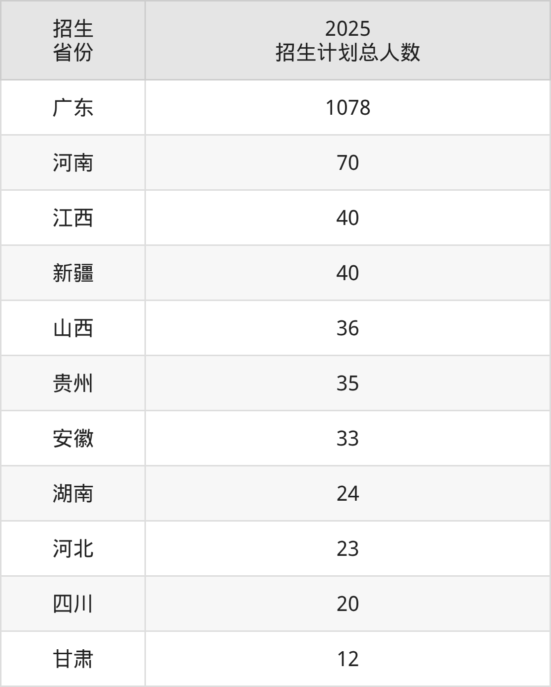2025年珠海城市职业技术学院面向全国11个省市开展专科招生;招生专业共31个,招生人数共1411人。2025年在广东省招生计划总人数是1078人,其中,珠海城市职业技术学院在广东省招生人数最多的是跨境电子商务。珠海城市职业技术学院在各省具体招生人数情况如下表。