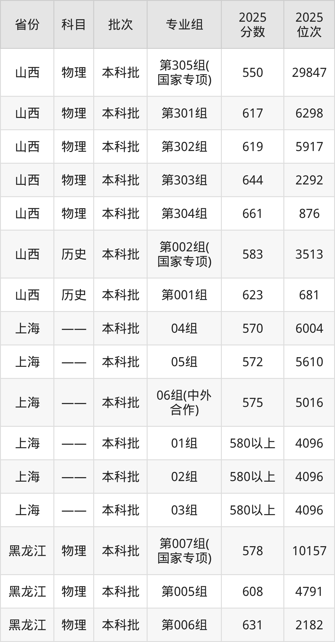 四川大学第305组(国家专项计划):2025年投档录取最低分为550分,录取最低位次为29847名。