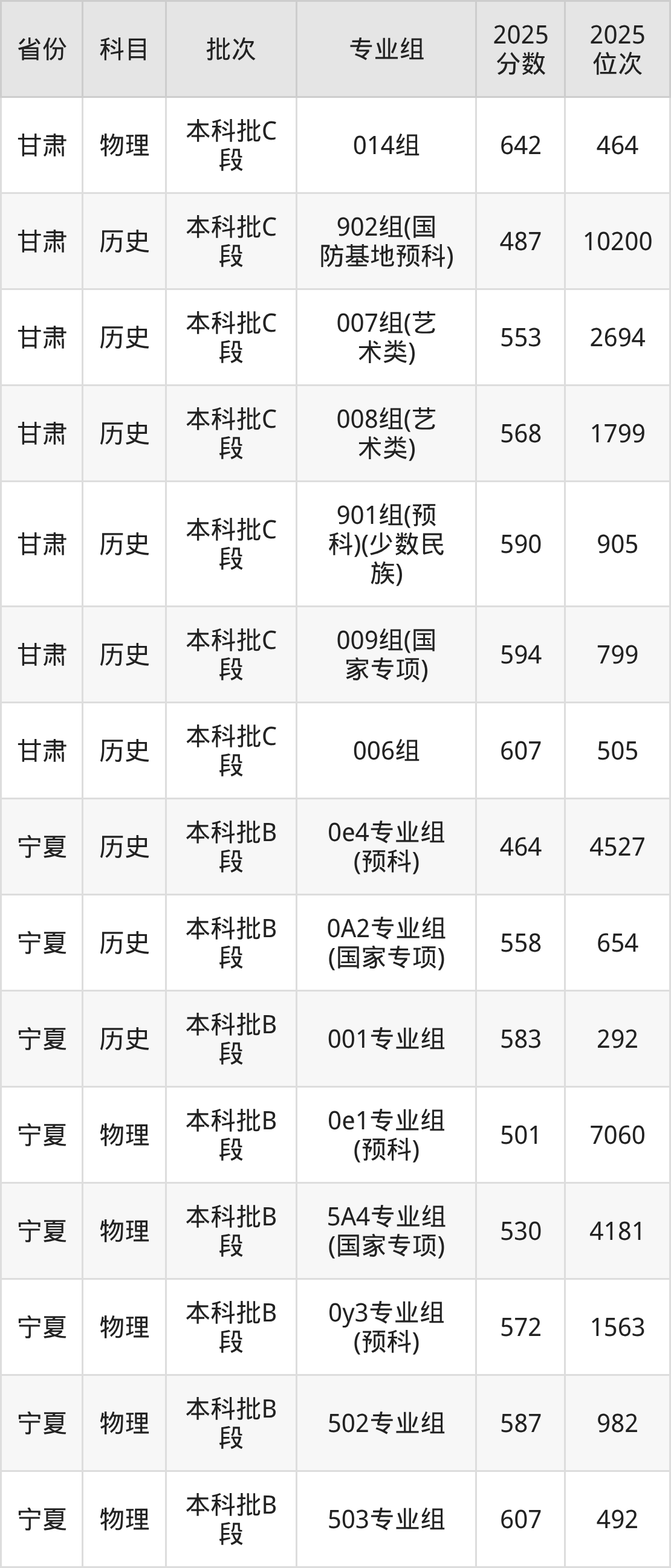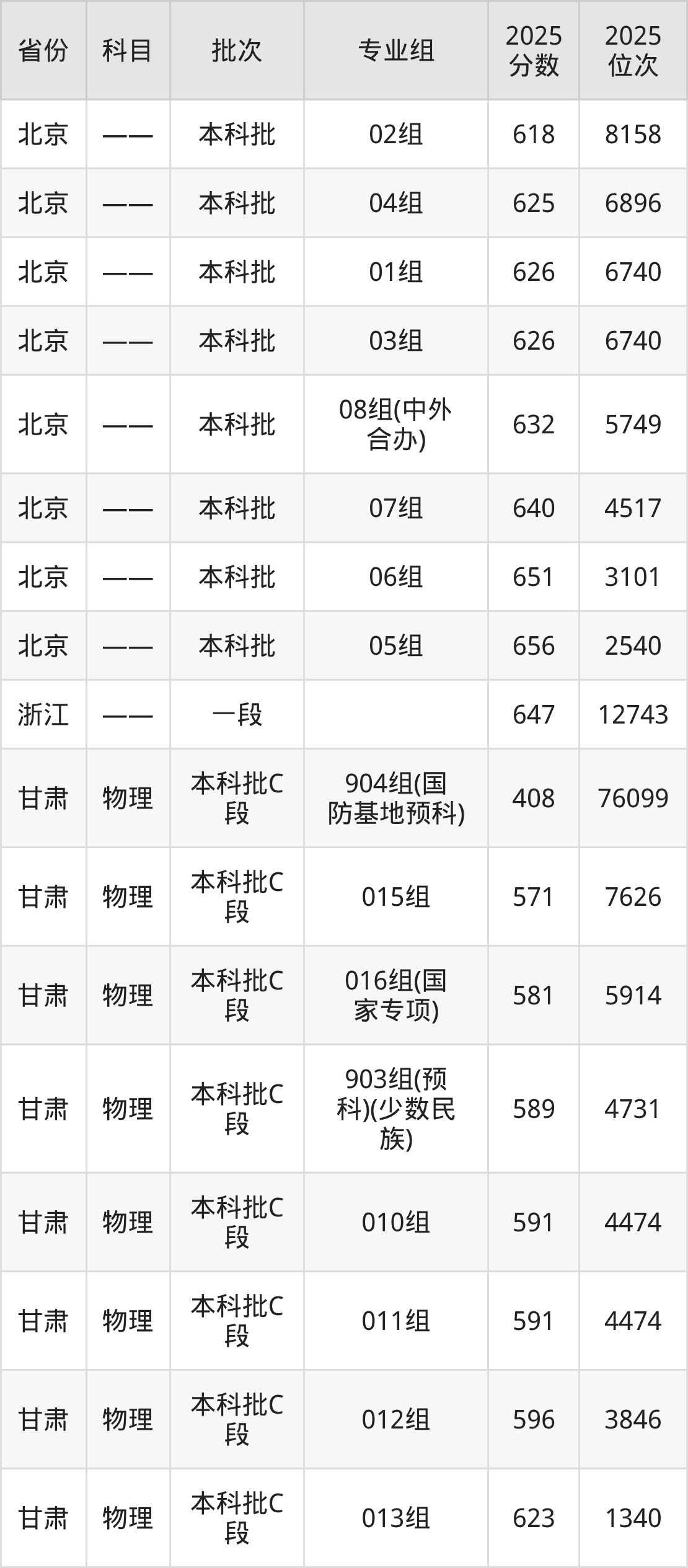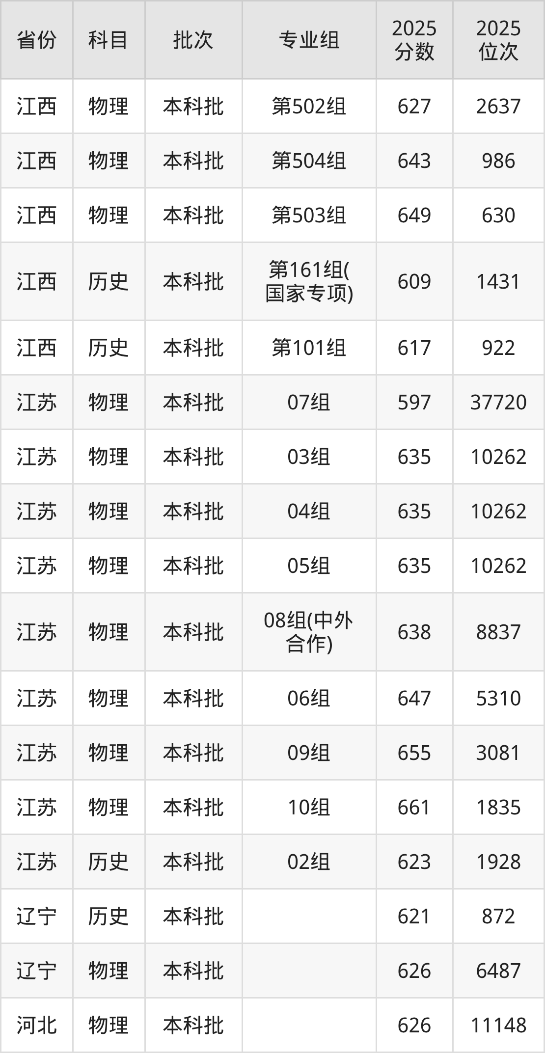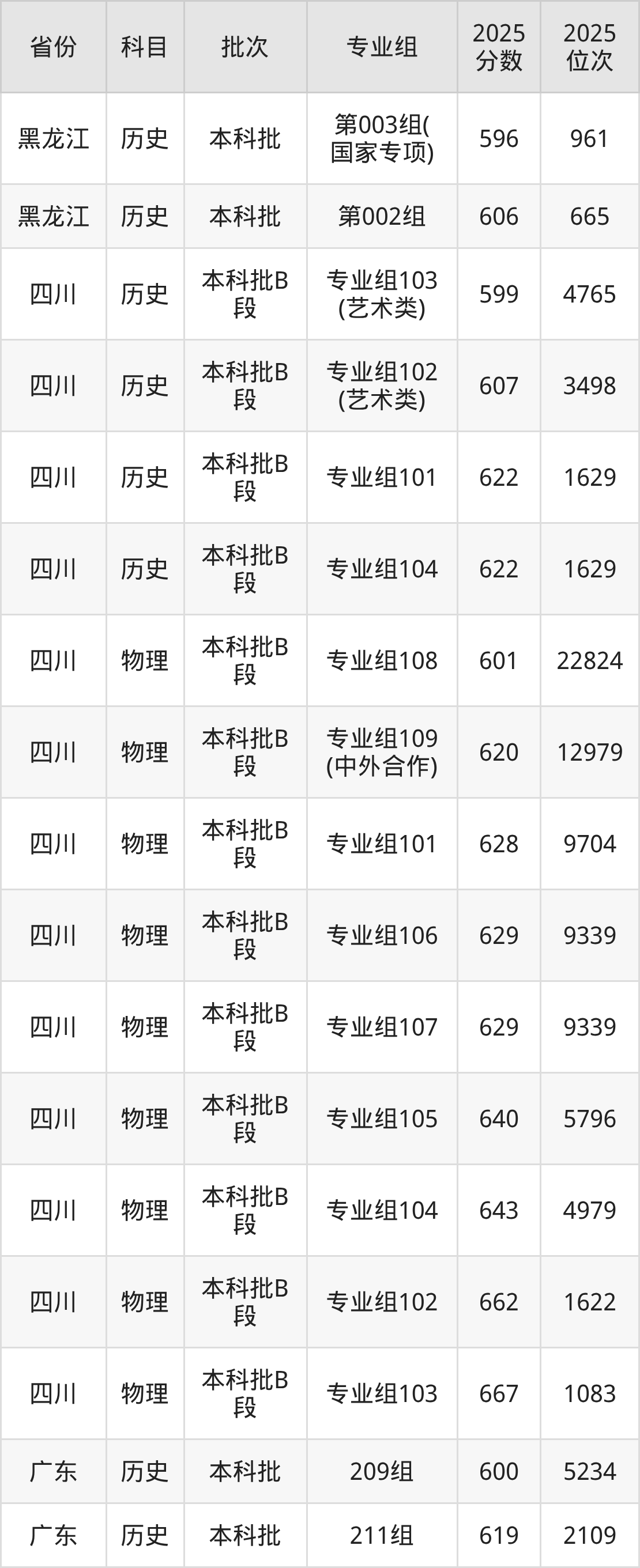 四川大学第10组(国家专项计划):2025年投档录取最低分为604分,录取最低位次为12636名。