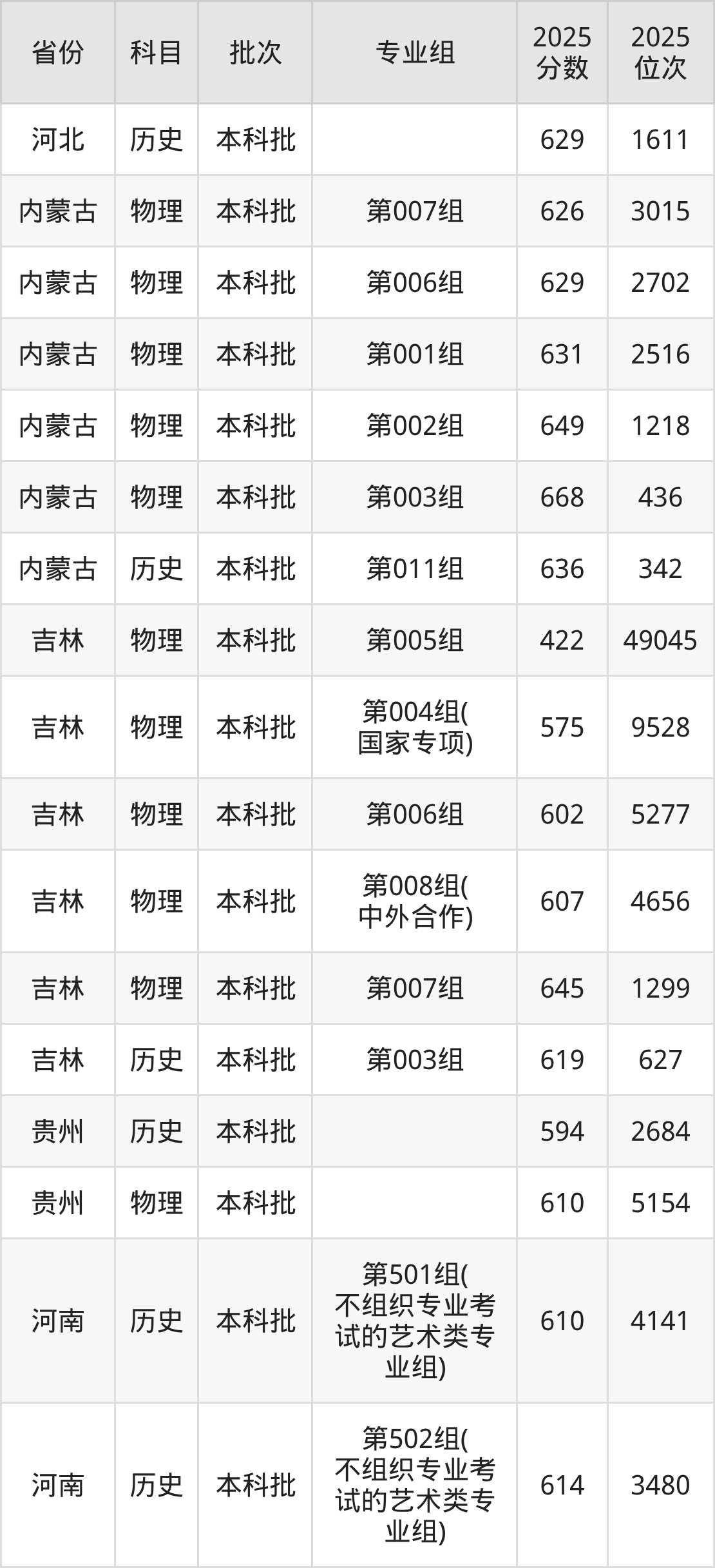 下面是2025年四川大学全国录取分数线一览表,请查阅。