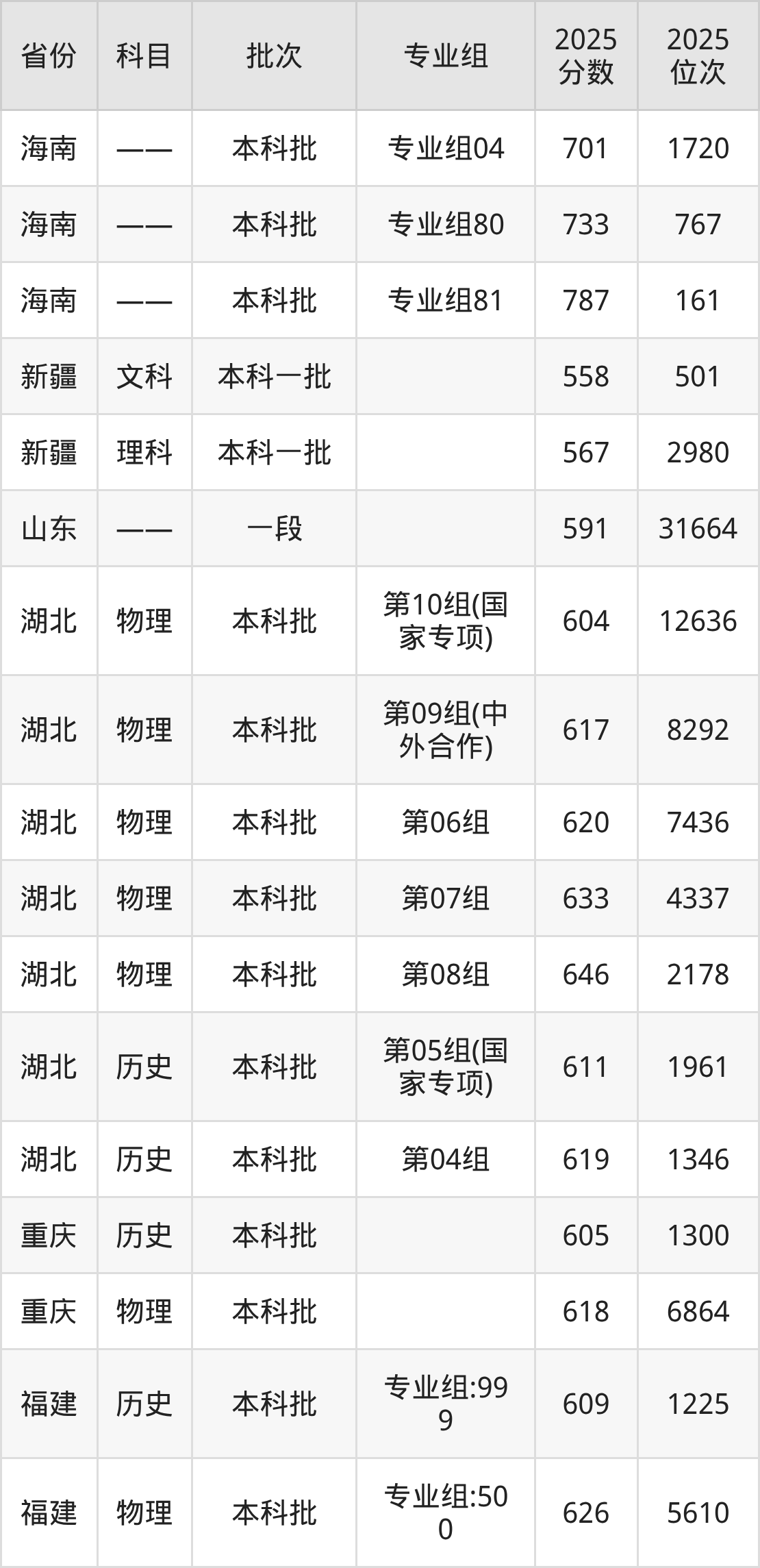 四川大学第05组(国家专项计划):2025年投档录取最低分为611分,录取最低位次为1961名。