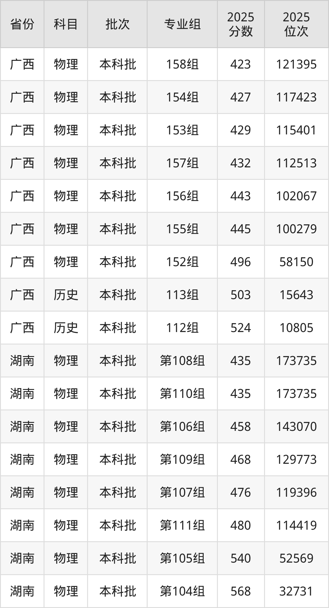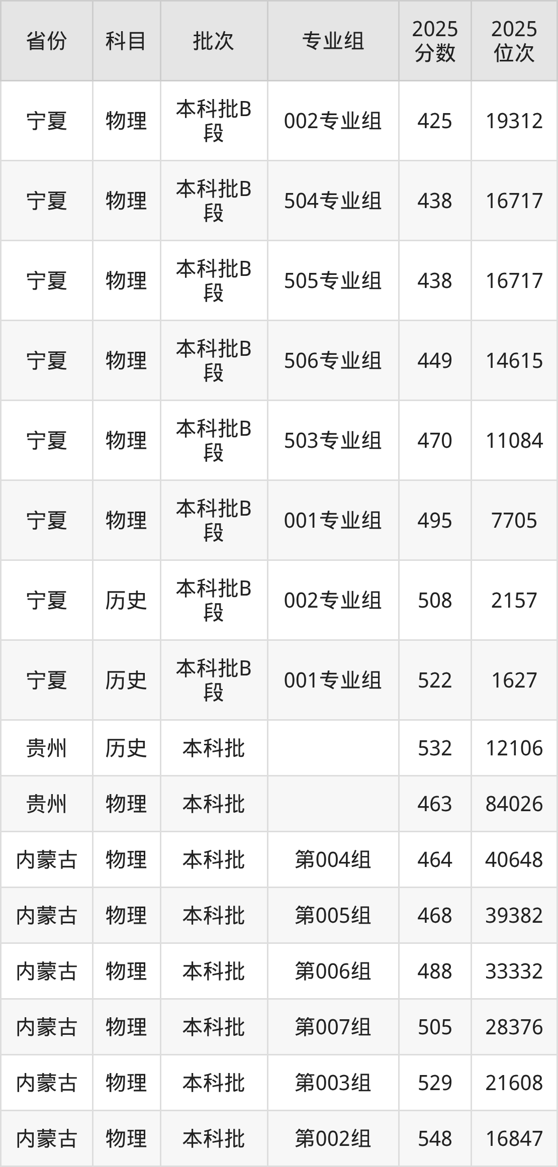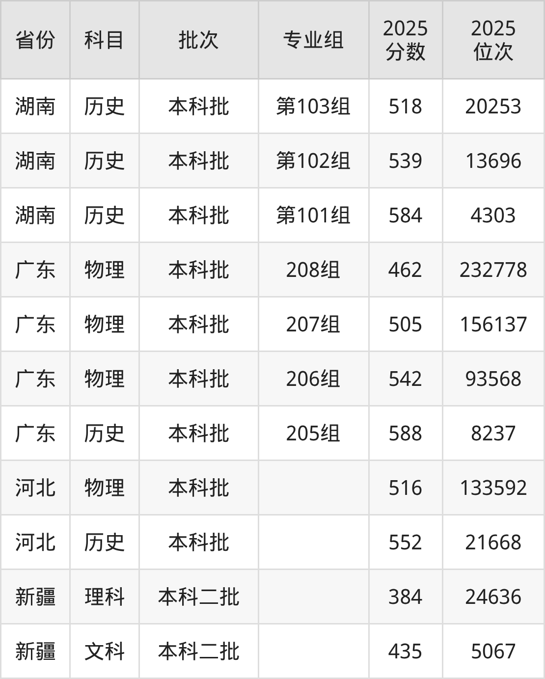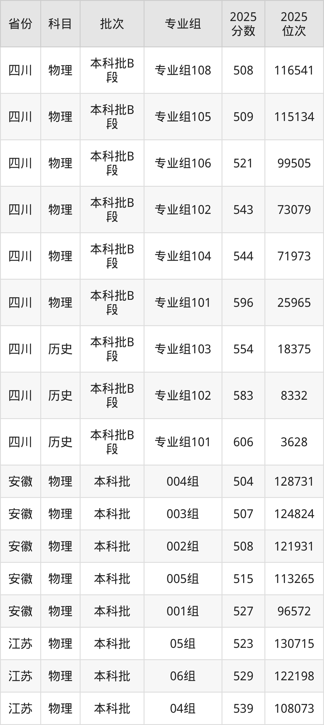 2025年在本科物理类进行招生,各专业组分数线详情如下: