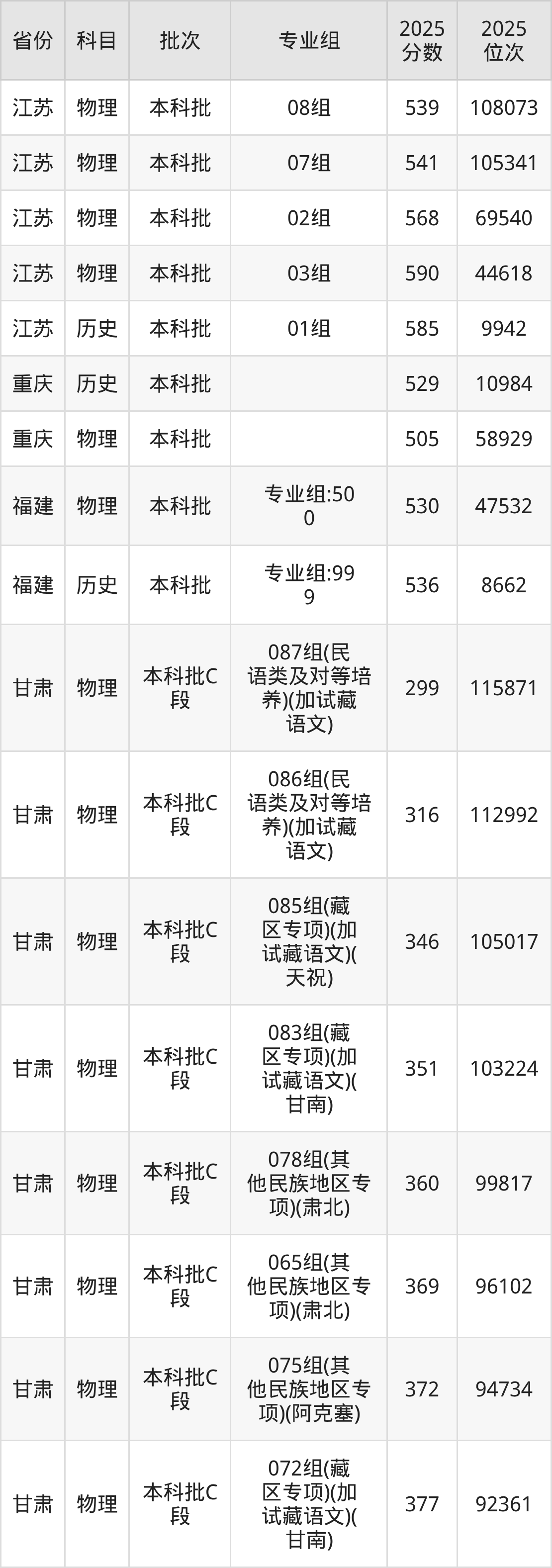 甘肃中医药大学08组:2025年投档录取最低分为539分,录取最低位次为108073名。