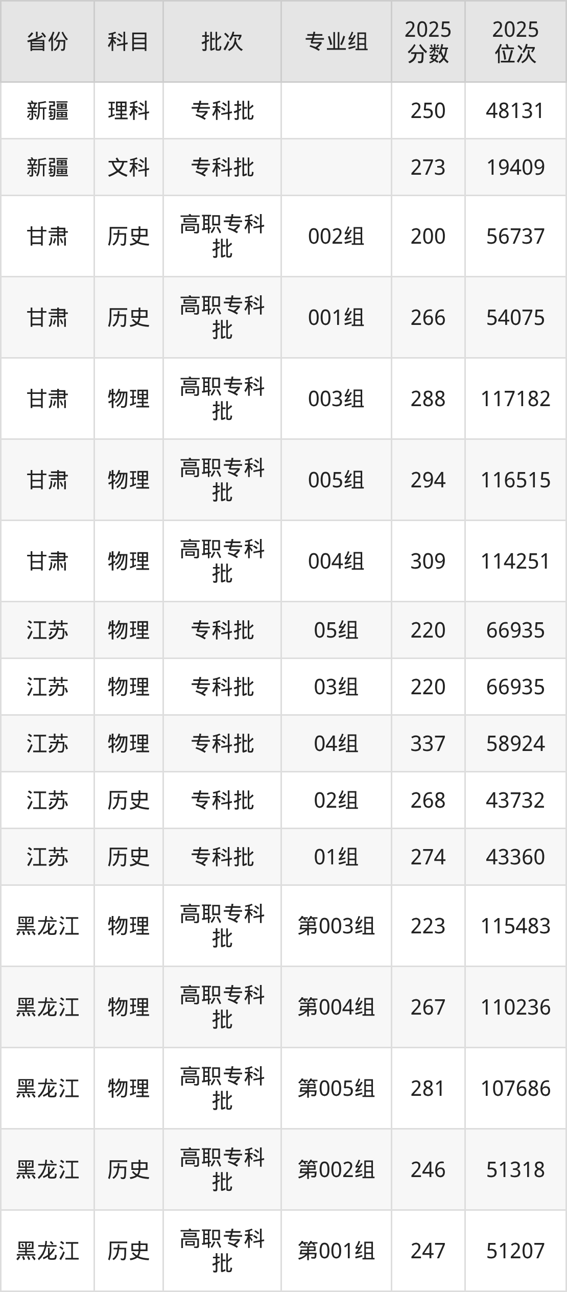 普通类专科历史类最低182分,专科物理类最低239分