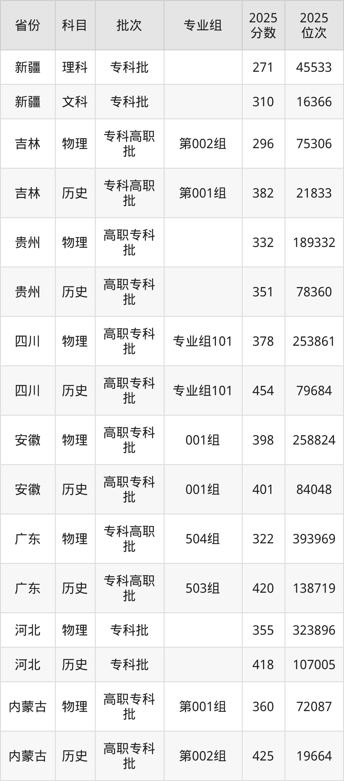 大庆医学高等专科学校专业组101:2025年投档录取最低分为378分,录取最低位次为253861名。