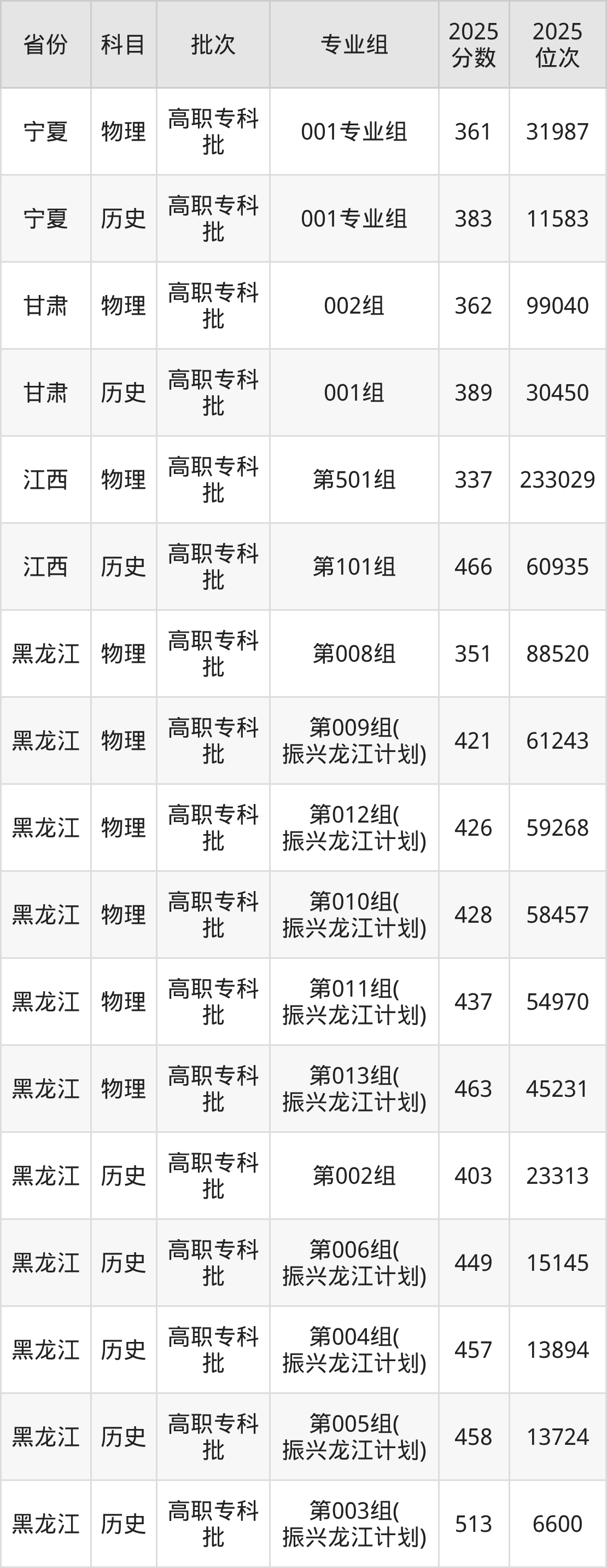 大庆医学高等专科学校第009组(振兴龙江计划):2025年投档录取最低分为421分,录取最低位次为61243名。