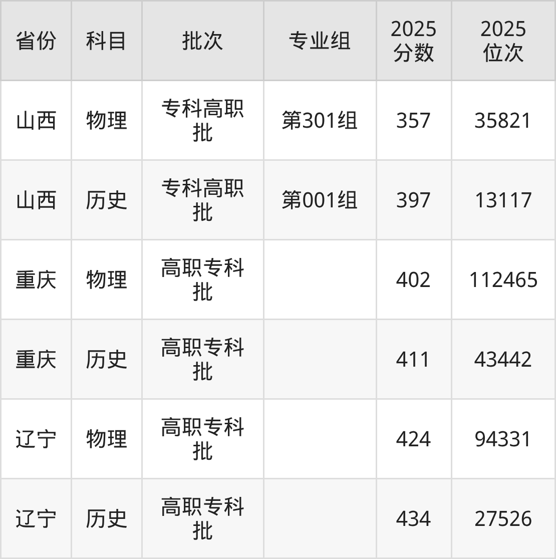 2025年投档录取最低分为402分,录取最低位次为112465名。