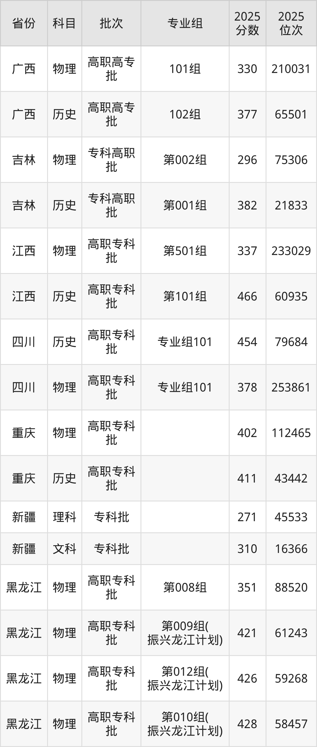 大庆医学高等专科学校101组:2025年投档录取最低分为330分,录取最低位次为210031名。