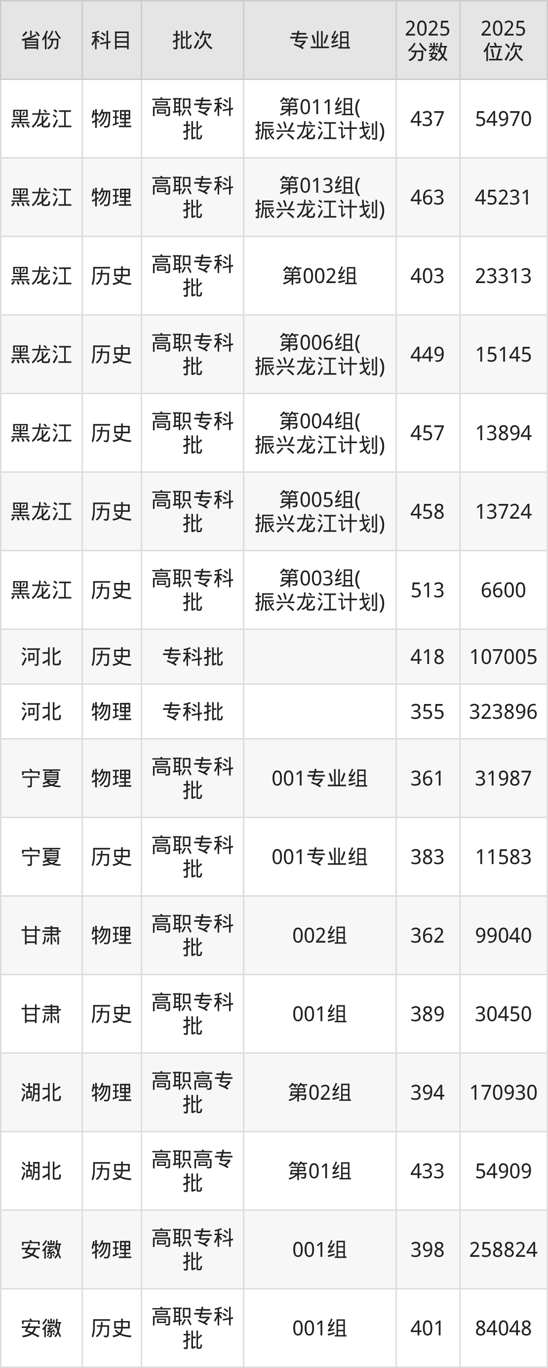 下面是2025年大庆医学高等专科学校全国录取分数线一览表,请查阅。