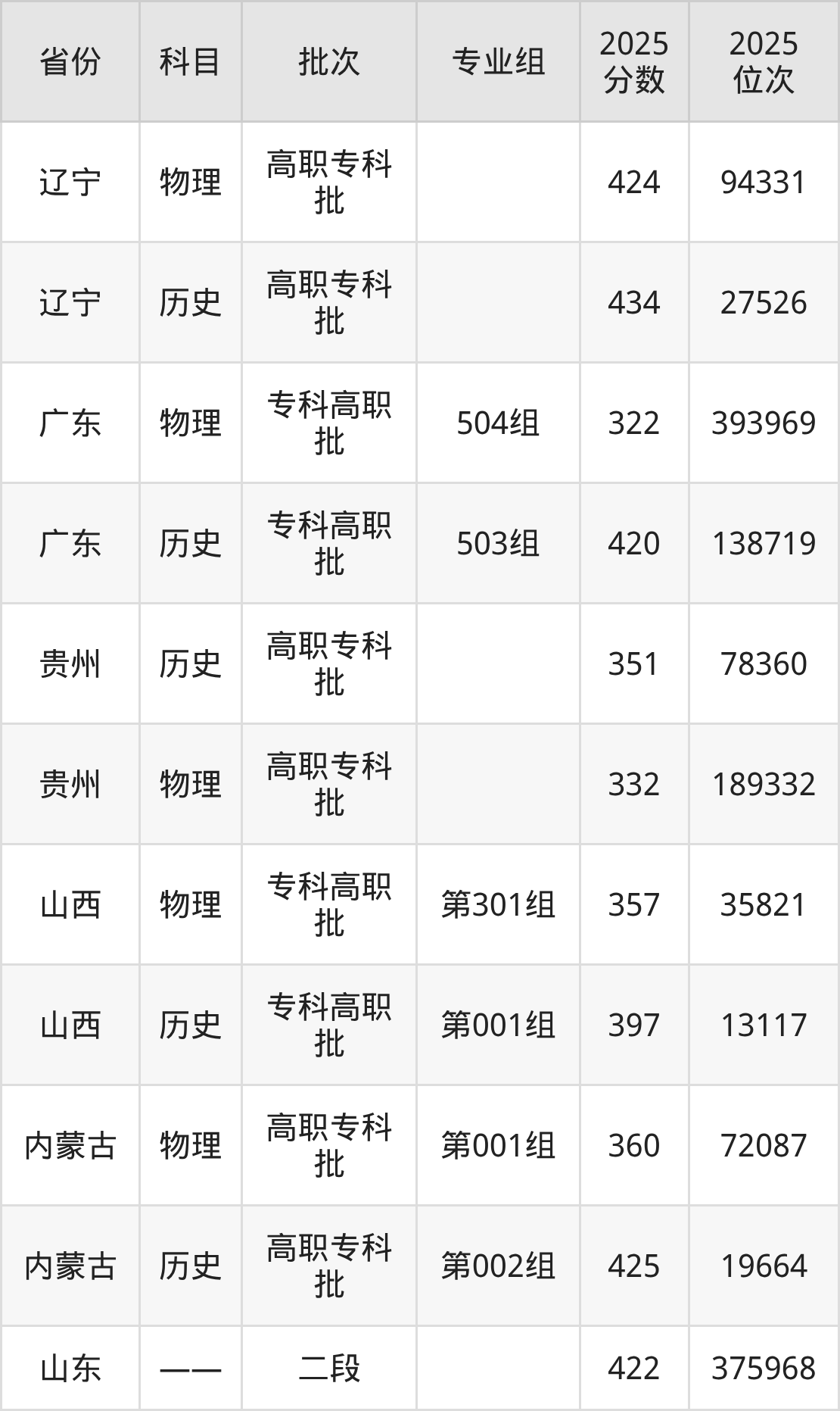 2025年投档录取最低分为424分,录取最低位次为94331名。