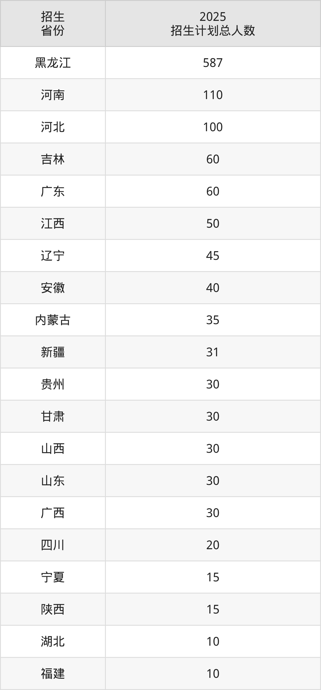 2025年大庆医学高等专科学校面向全国23个省市开展专科招生;招生专业共15个,招生人数共1363人。2025年在黑龙江省招生计划总人数是587人,其中,大庆医学高等专科学校在黑龙江省招生人数最多的是护理。大庆医学高等专科学校在各省具体招生人数情况如下表。