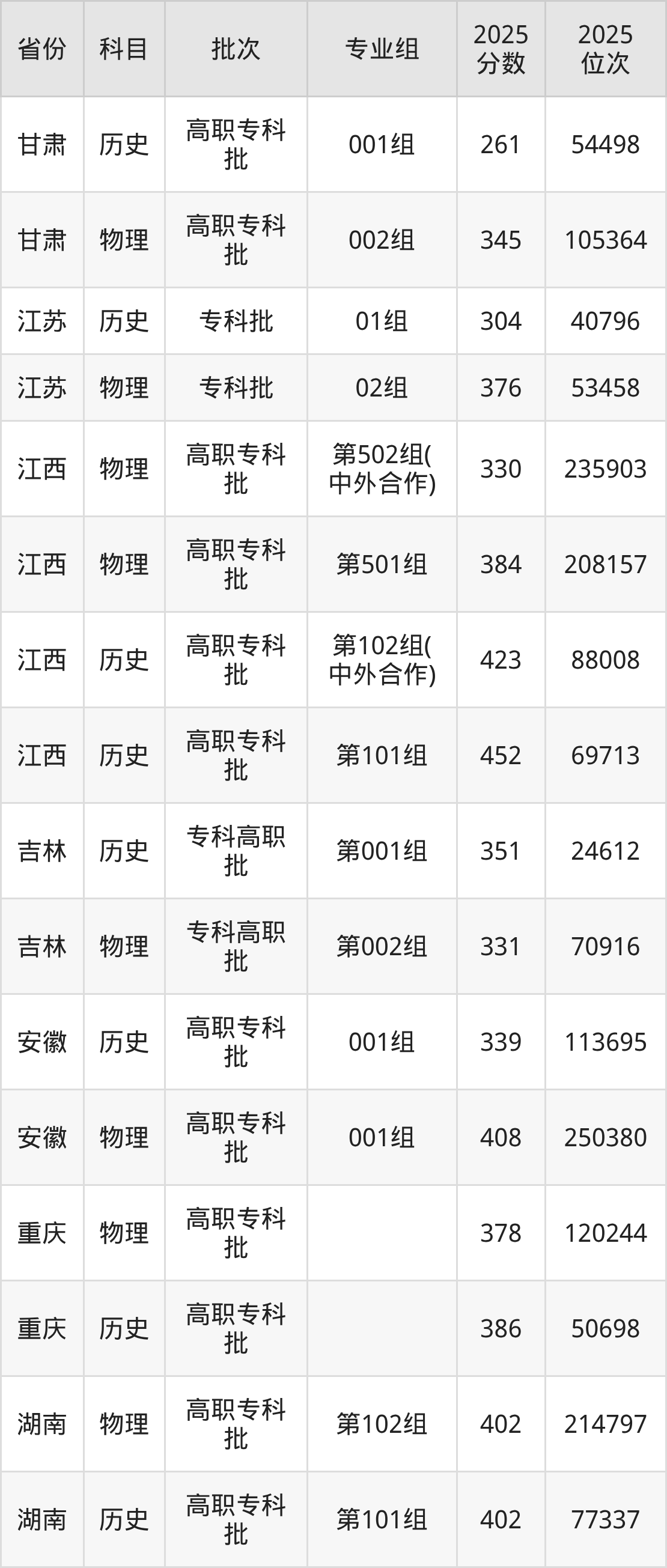 下面是2025年江西现代职业技术学院全国录取分数线一览表,请查阅。