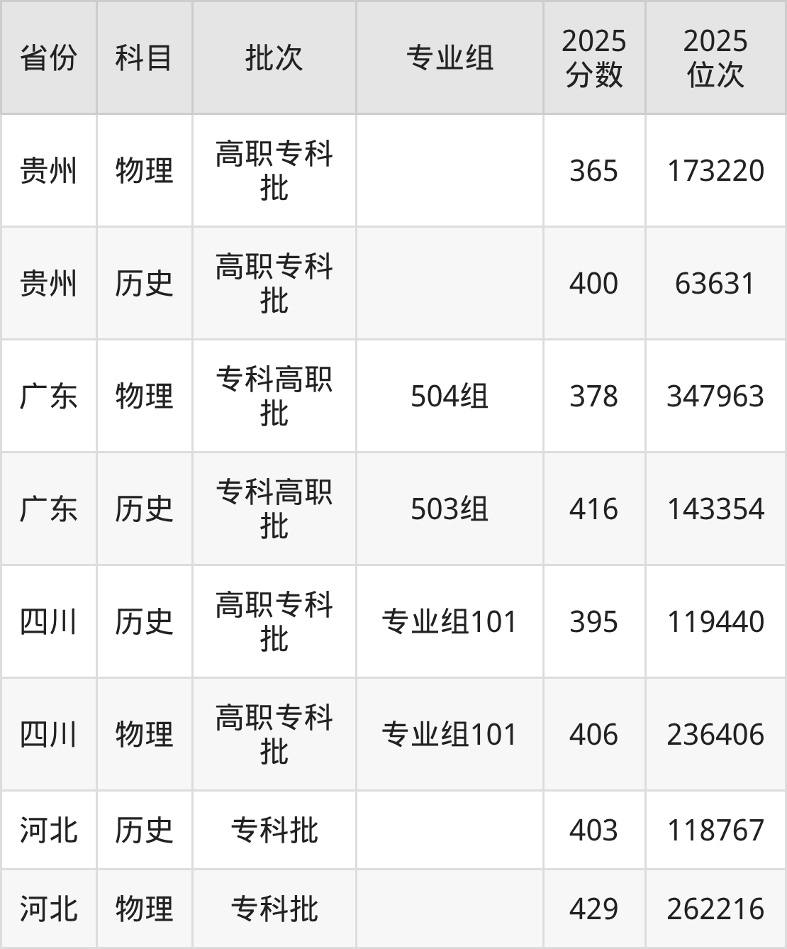 2025年投档录取最低分为378分,录取最低位次为120244名。