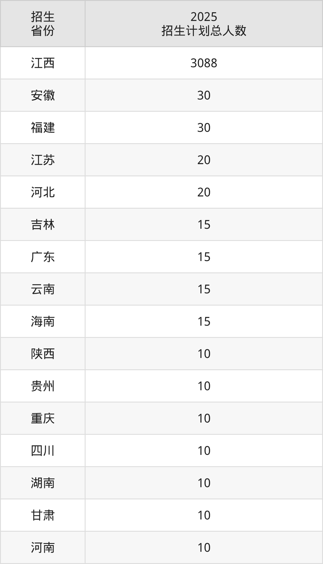 2025年江西现代职业技术学院面向全国16个省市开展专科招生;招生专业共38个,招生人数共3318人。2025年在江西省招生计划总人数是3088人,其中,江西现代职业技术学院在江西省招生人数最多的是新能源汽车技术。江西现代职业技术学院在各省具体招生人数情况如下表。