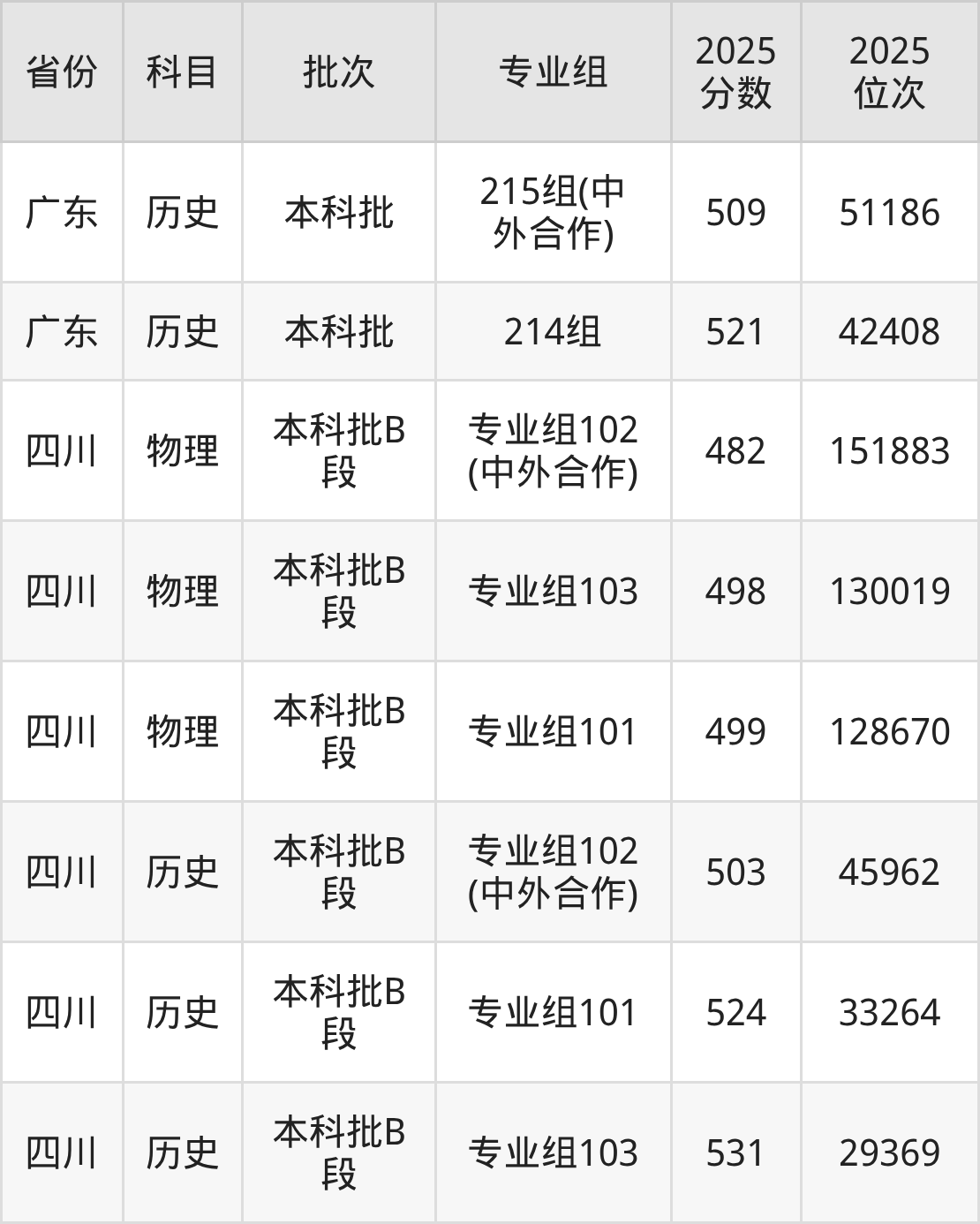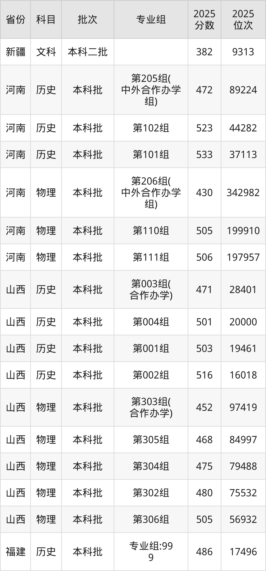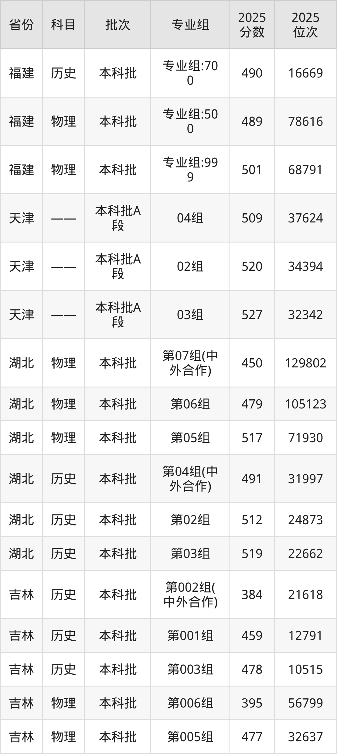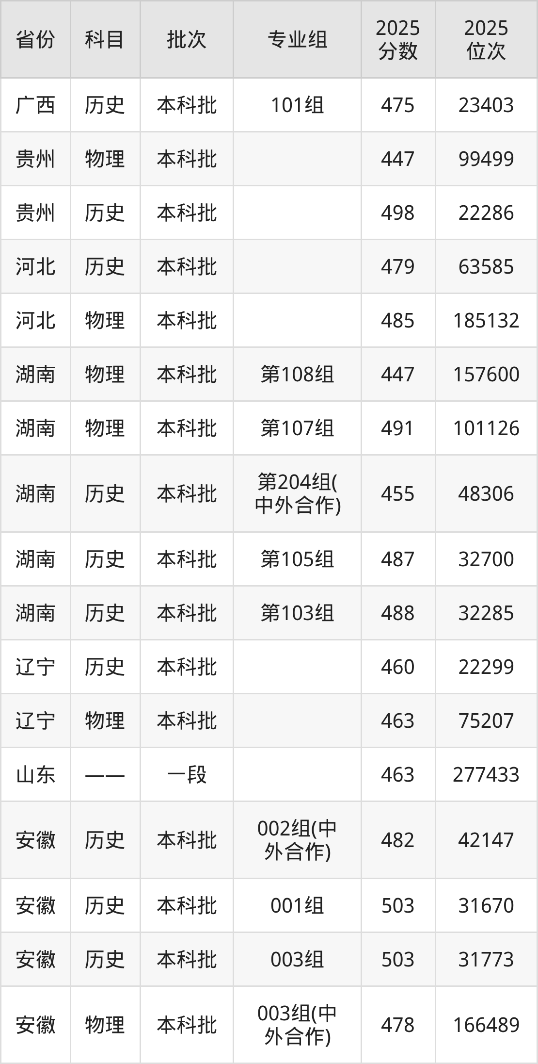 2025年投档录取最低分为463分,录取最低位次为75207名。