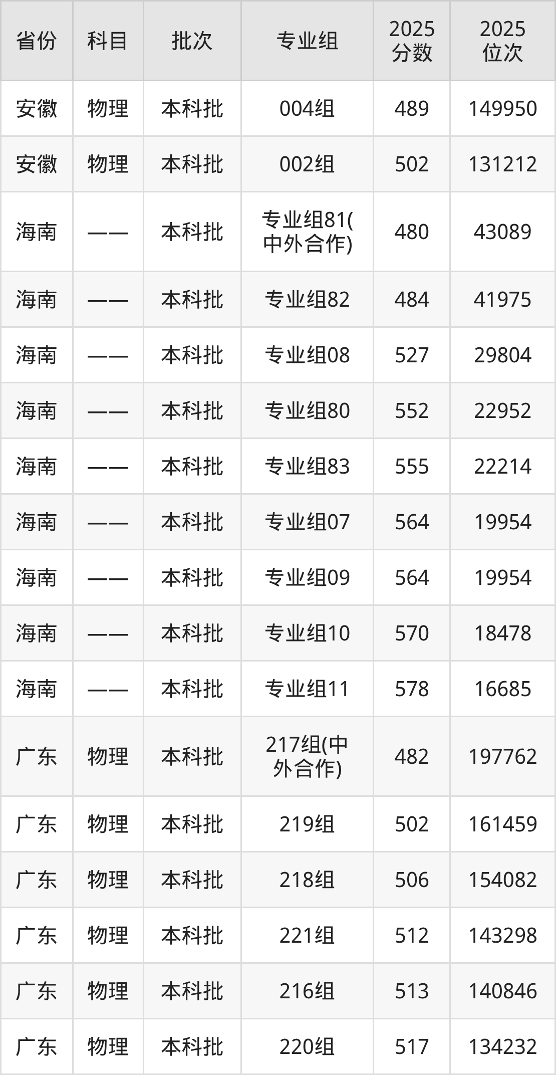 海南热带海洋学院第001组:2025年投档录取最低分为493分,录取最低位次为10655名。
