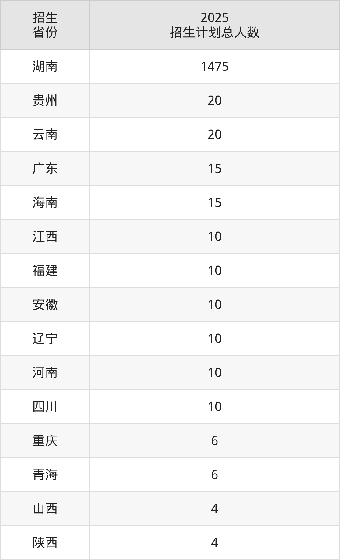 2025年湖南科技职业学院面向全国15个省市开展专科招生;招生专业共25个,招生人数共1625人。2025年在湖南省招生计划总人数是1475人,其中,湖南科技职业学院在湖南省招生人数最多的是机电一体化技术。湖南科技职业学院在各省具体招生人数情况如下表。