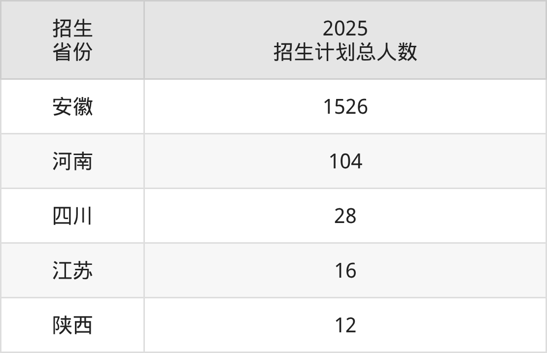 2025年安徽文达信息工程学院面向全国5个省市开展本科招生;招生专业共28个,招生人数共1686人。2025年在安徽省招生计划总人数是1526人,其中,安徽文达信息工程学院在安徽省招生人数最多的是无人驾驶航空器系统工程。安徽文达信息工程学院在各省具体招生人数情况如下表。