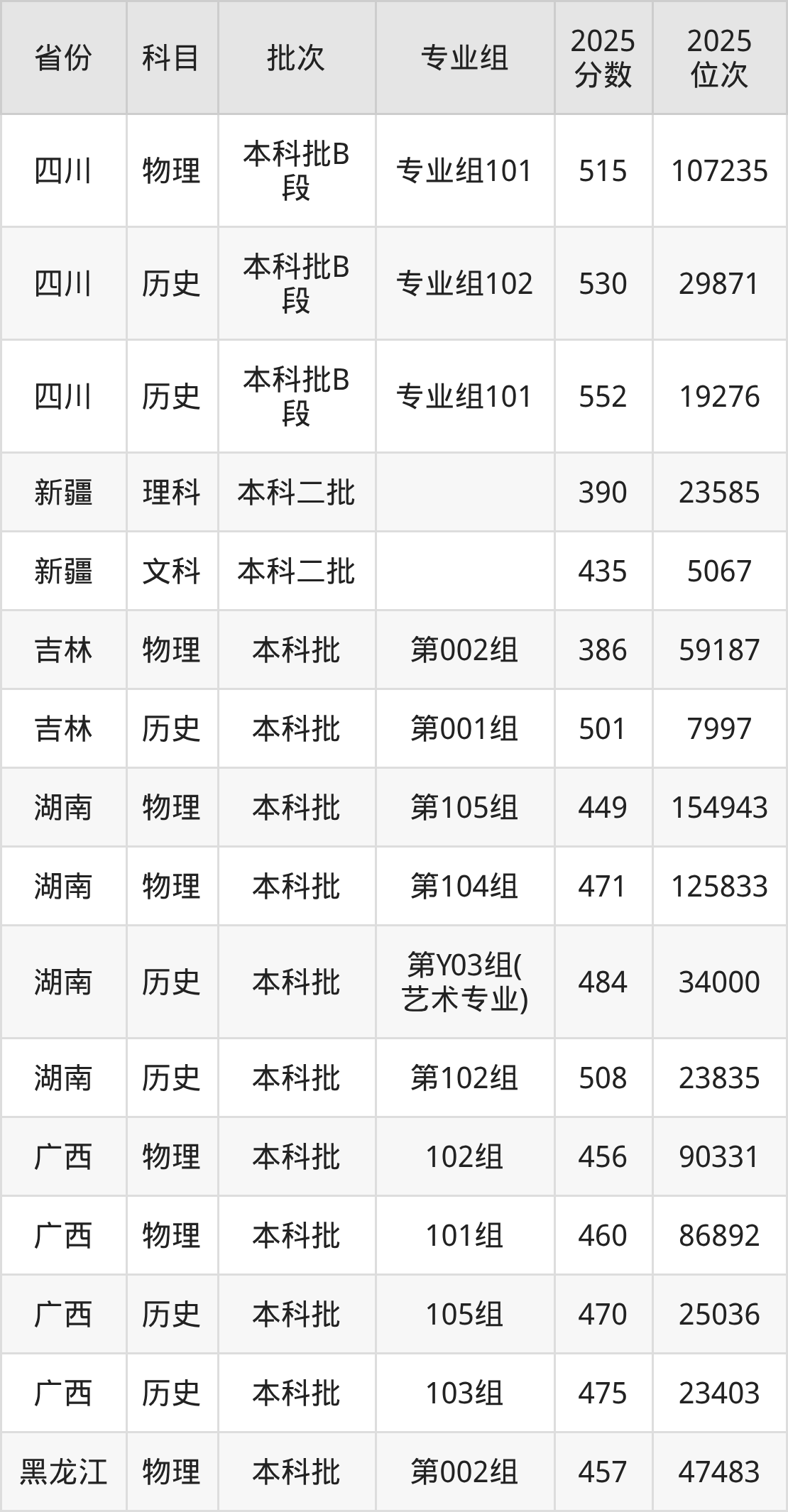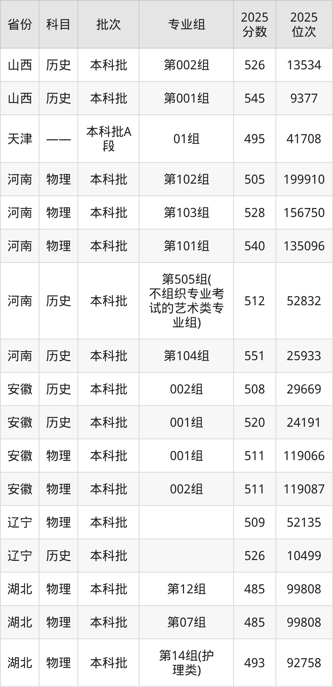 湖北文理学院第001组:2025年投档录取最低分为501分,录取最低位次为7997名。