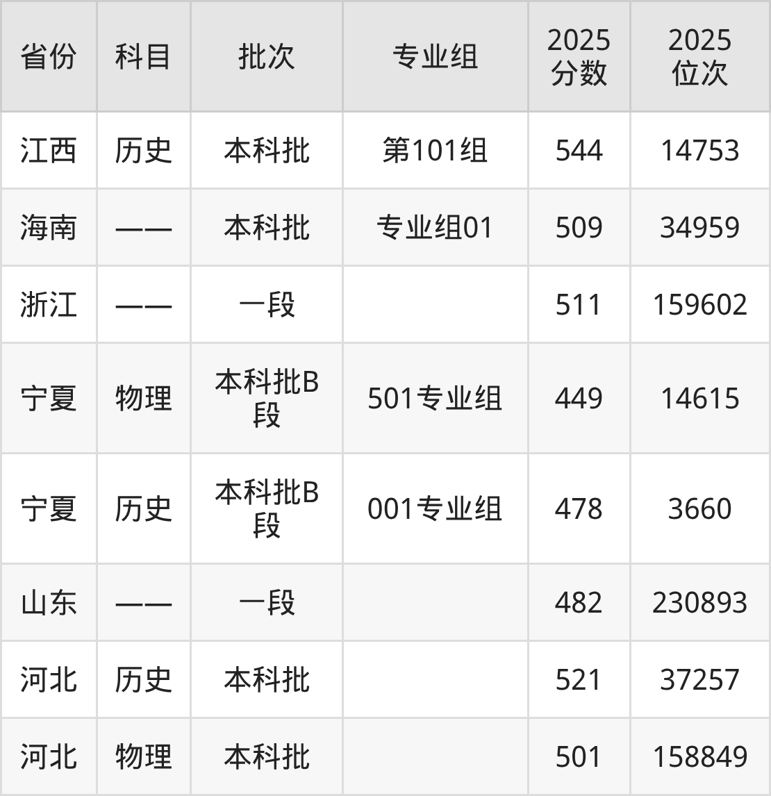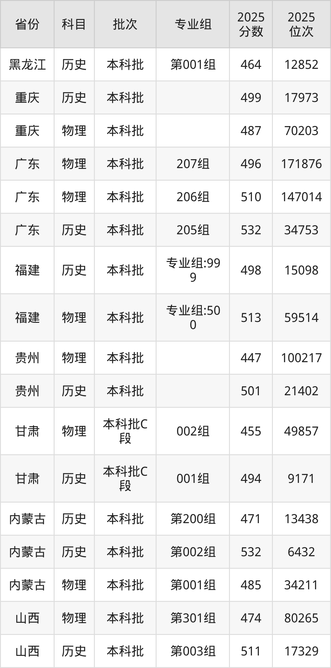 湖北文理学院第001组:2025年投档录取最低分为464分,录取最低位次为12852名。