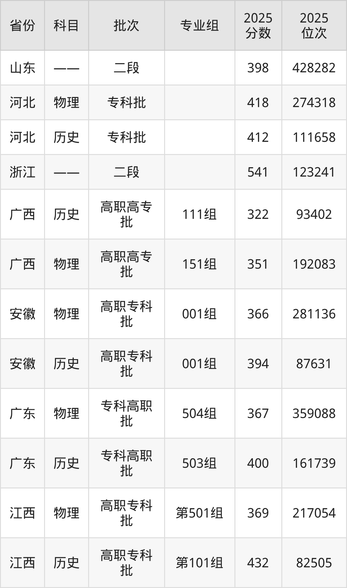 下面是2025年淮北职业技术学院全国录取分数线一览表,请查阅。